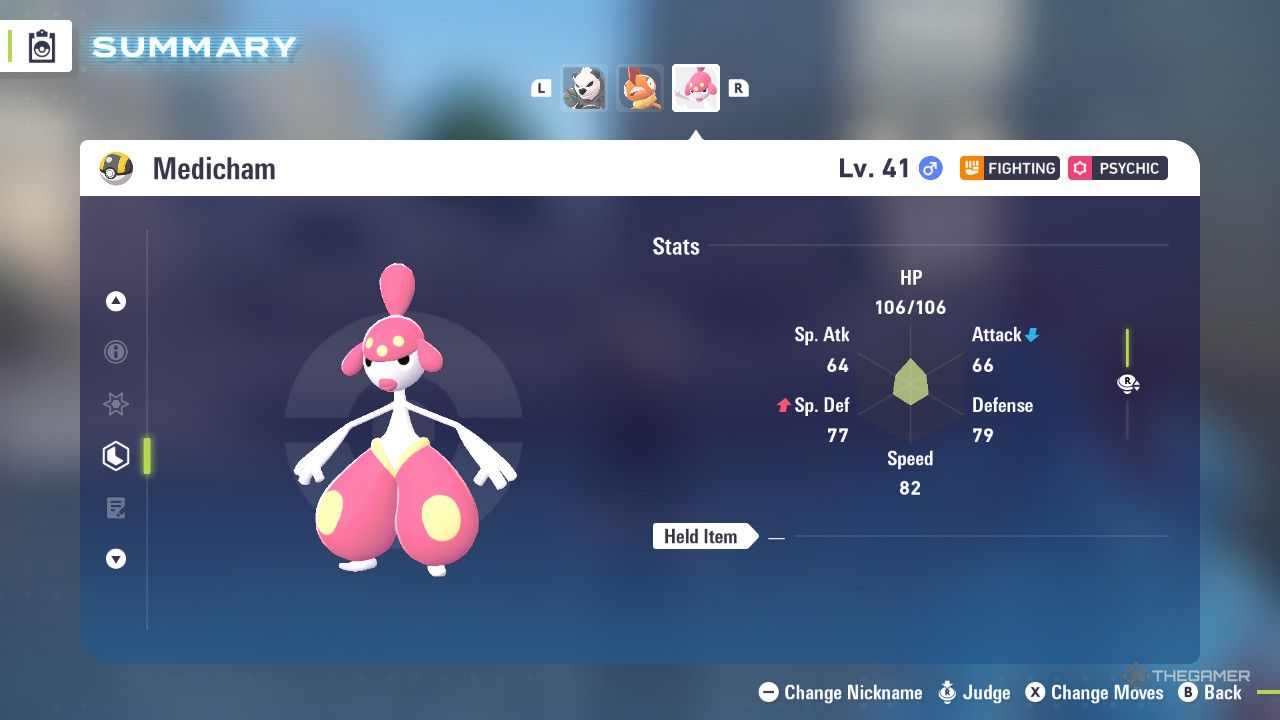Medicham является отличной точкой сравнения для всех Покемонов типа Fighting в Pokémon Legends: Z-A. Его уникальное сочетание типов Fighting и Psychic, а также разнообразный набор атак, выделяют его. Хотя он больше рассчитан на прием ударов, чем на нанесение их, он преуспевает в физических атаках.