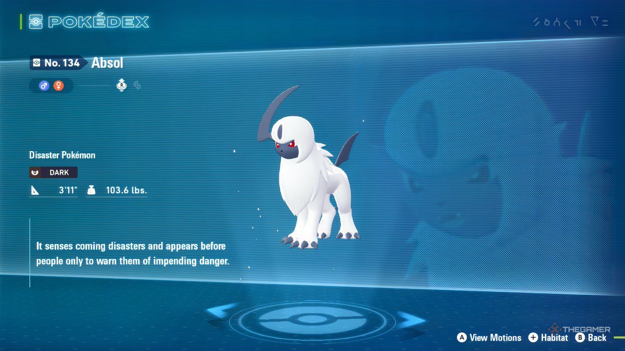 Высокая Атака (154) и Скорость (151) Абсоля позволяют ему быстро побеждать противников, прежде чем у них появится шанс атаковать, компенсируя его слабую защиту. Хотя он и не очень вынослив, сильная атака Абсоля позволяет ему быстро выигрывать сражения, часто до того, как он получит значительный урон.