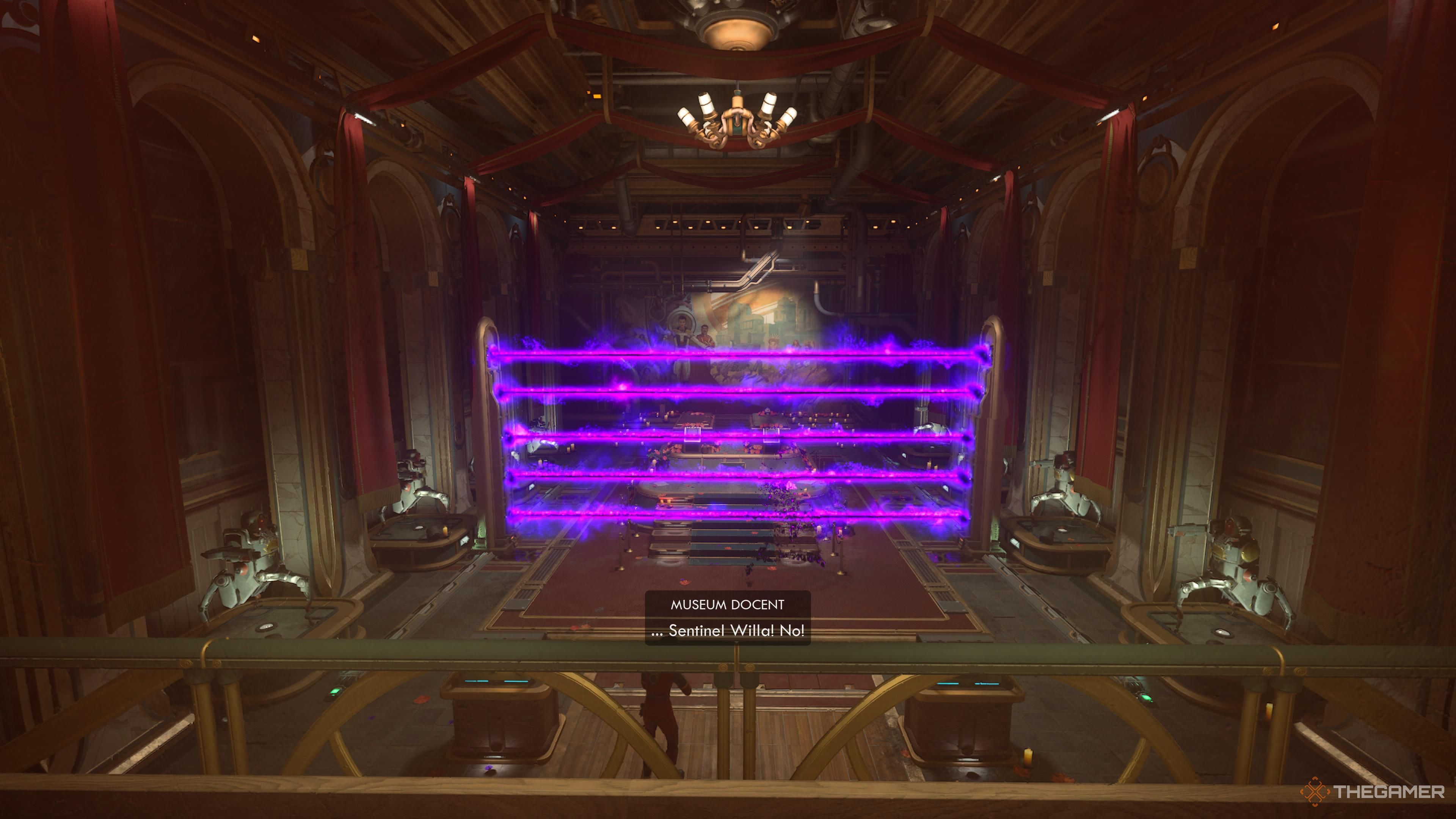 Вы увидите робота на выставке, но он застрял на месте. Однако, если у вас есть как минимум девять очков в навыке Инженерия, вы можете переместить его и дать ему свободно перемещаться. В противном случае, вы можете найти Продвинутый Ключ Дешифрования на окне над дверью, ведущей в следующую комнату, где находятся вражеские роботы.