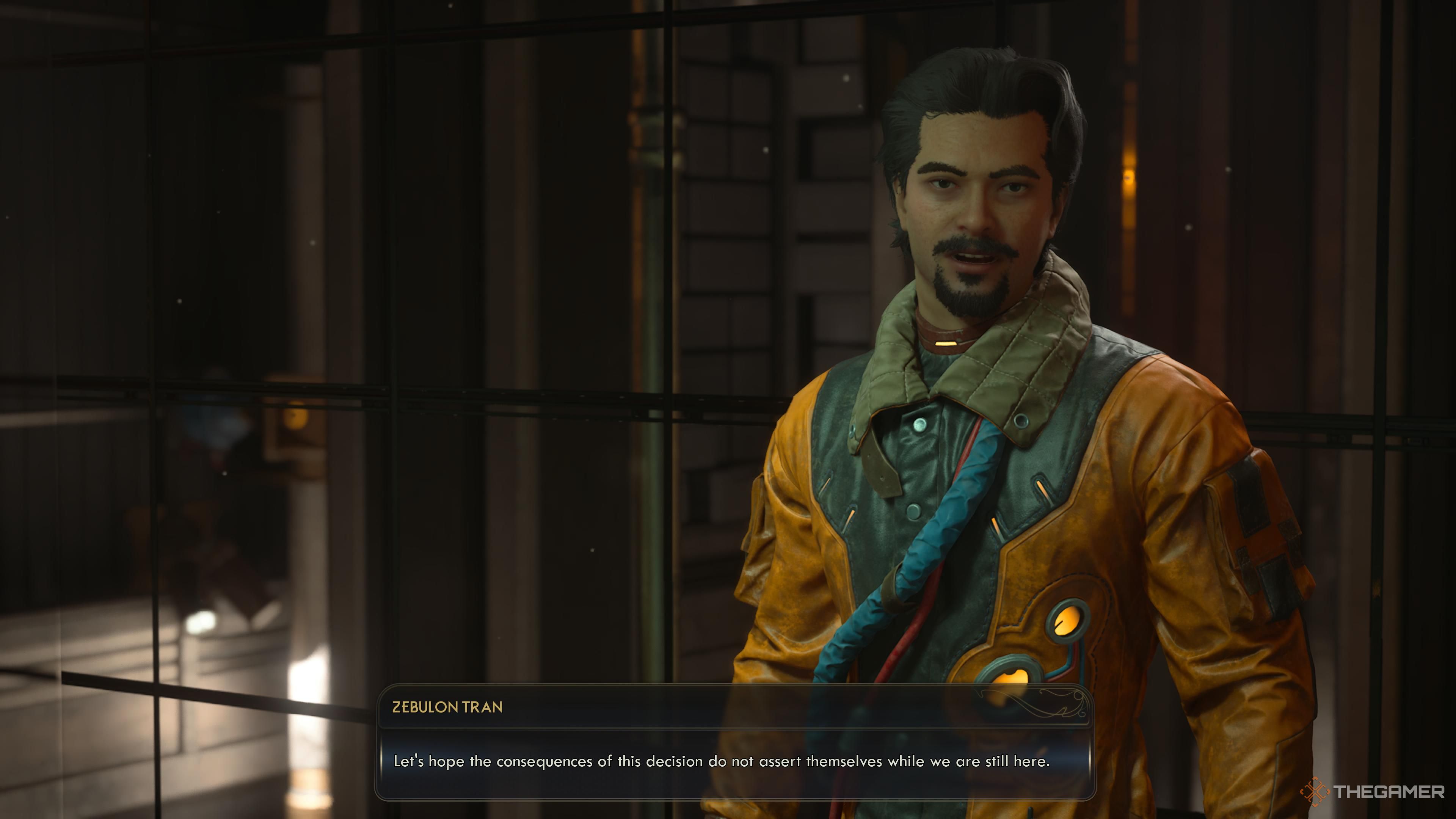 Окей, значит, если я решу отказаться от устройства, мне нужно убедить Зеба отступить. Честно говоря, мне довольно сложно сделать это самому, но если я позволю Найлсу вести переговоры, он сгладит все углы. Найлс уговаривает Зеба согласиться сохранить всё в тайне пока что и найти другой способ справиться с Протекторатом. И вот так, квест выполнен!