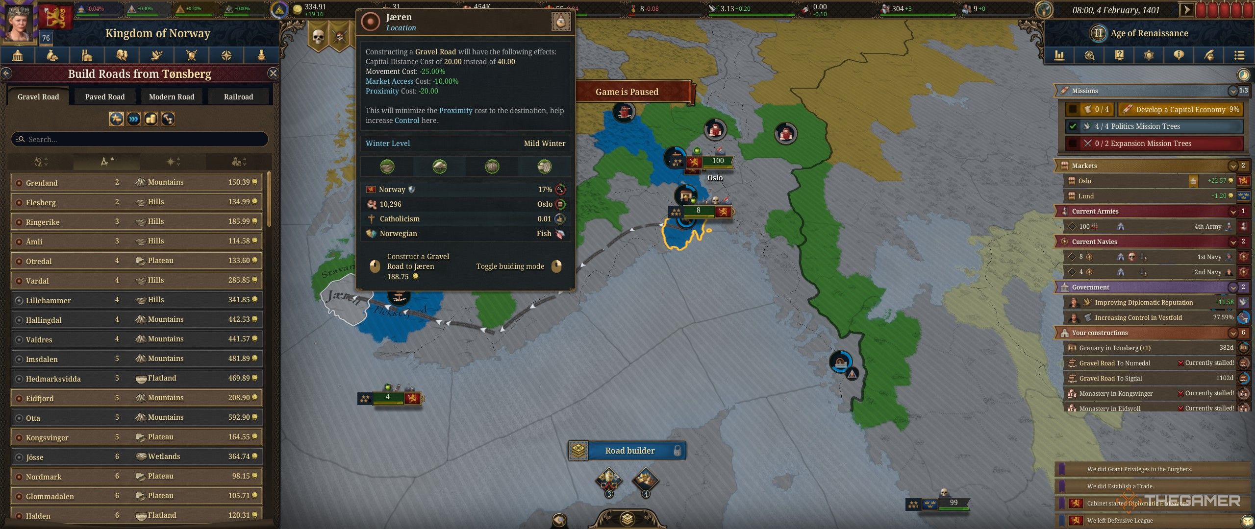 Хотя строительство дорог может показаться незначительными расходами по сравнению с более крупными проектами, такими как заводы или армии, стратегически расположенные дороги невероятно важны. Дороги значительно повышают ценность различных областей за счет ускорения перемещения армии, расширения торговых возможностей и снижения стоимости поддержания контроля при соединении со столицей.
