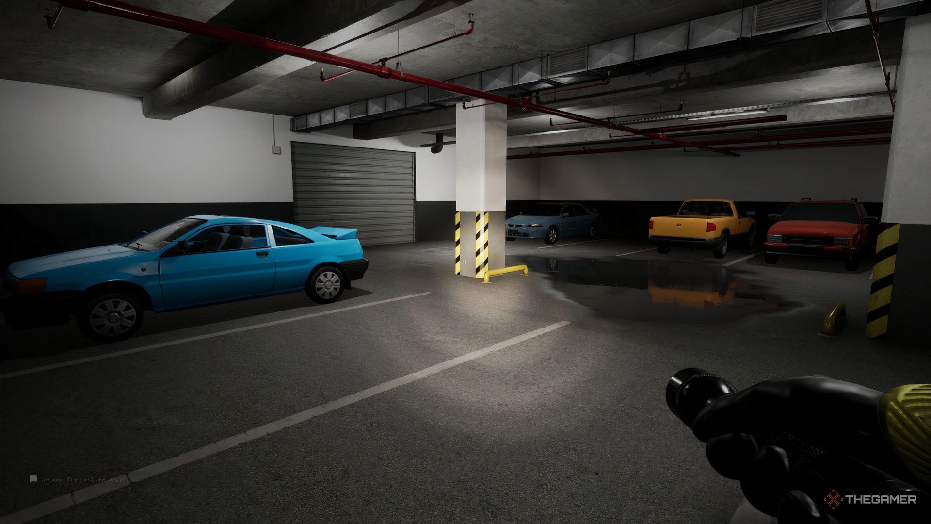 По мере исследования парковки 1-го уровня вы заметите, что большинство автомобилей накрыты, за исключением одной комнаты. Это сделано не просто для красоты – цвета видимых автомобилей на самом деле являются ответом на головоломку с кодовой панелью, которую вам нужно будет решить, чтобы двигаться дальше. Так что, если что-то привлечет ваше внимание, запомните это – это, вероятно, важно.