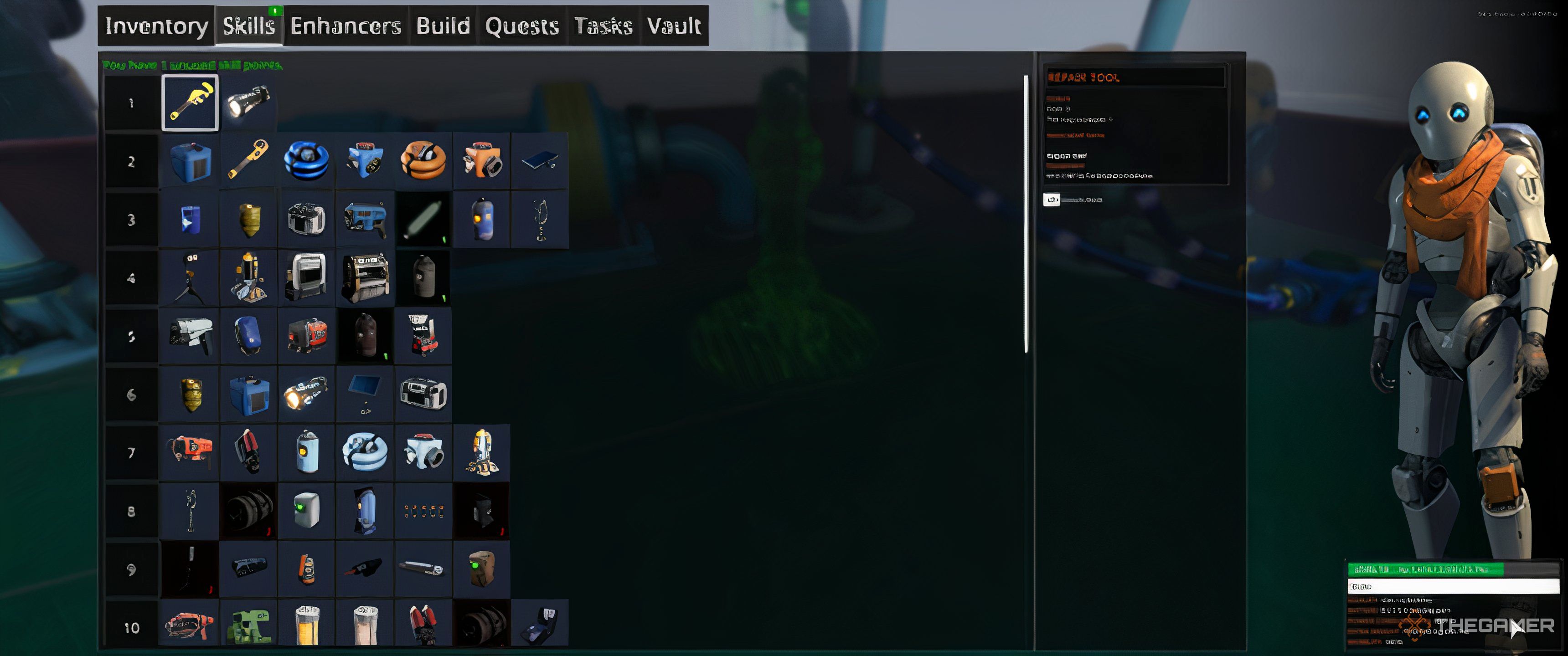 Как только вы достигнете второго уровня навыков, вы разблокируете Разборщик. Этот удобный инструмент позволяет разбирать найденные предметы и превращать их в полезный лом. Просто экипируйте Разборщик, чтобы использовать его. Вы можете добавить его на панель быстрого доступа, перетащив из инвентаря или щелкнув правой кнопкой мыши по предмету и выбрав ‘добавить на панель быстрого доступа’.
