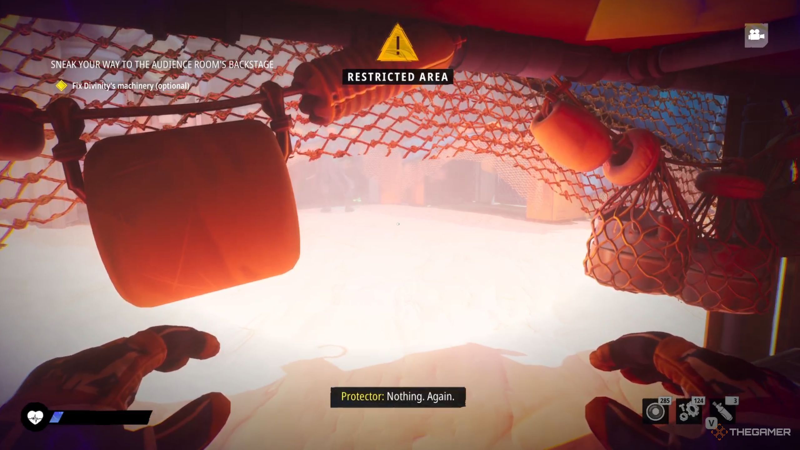 Если вы выберете человека, который не смог убедить Мистиков, вам нужно будет найти Нахе, замаскированную под одного из них. Независимо от вашего выбора, вы попадете в ограниченную зону, где Нахе попросит вас отремонтировать Божественную Механику, если ваш спутник-Водоход повредил ее, или она упомянет об этом, даже если они этого не сделали.