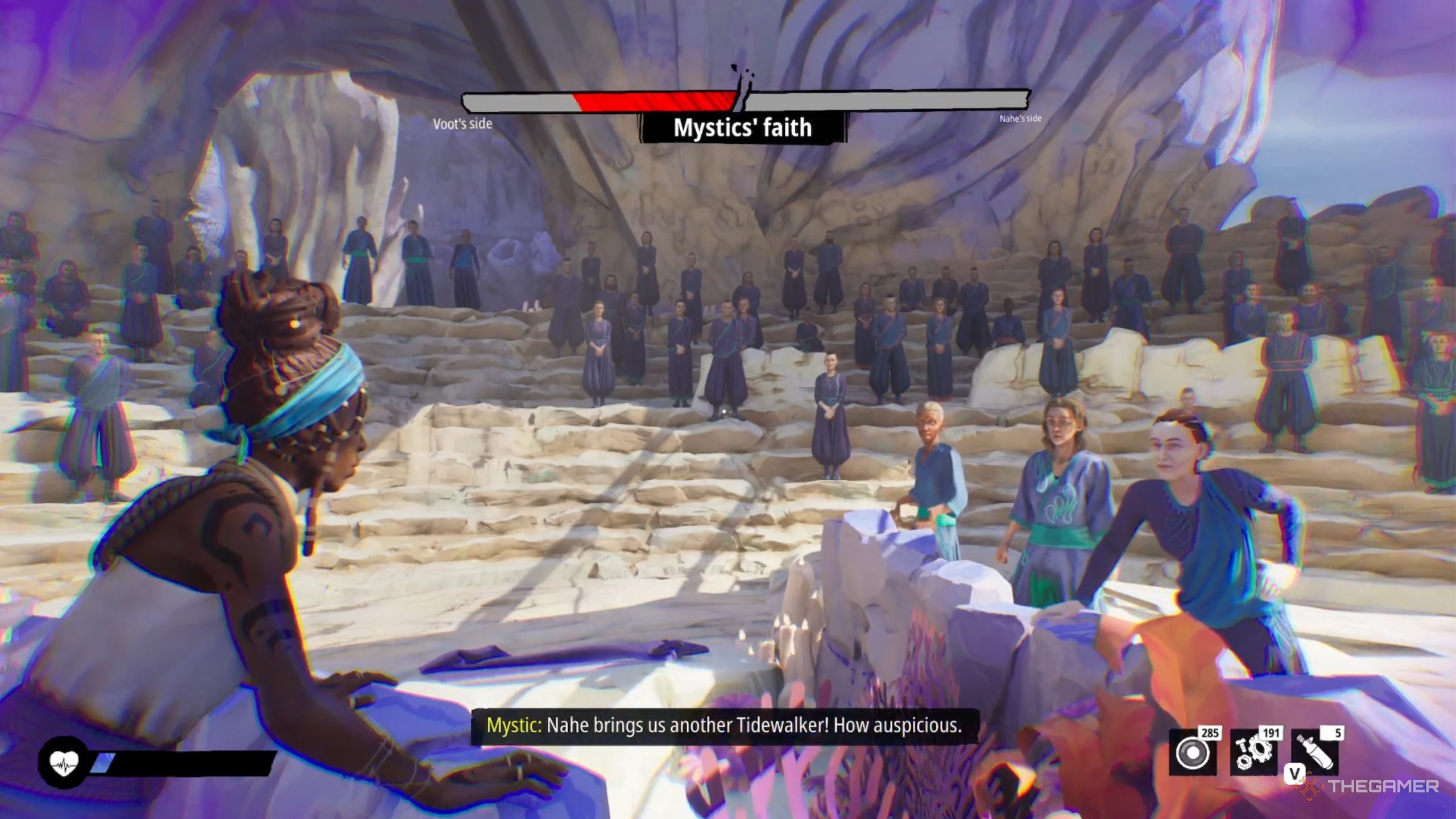 Подобно другим частям Tides Of Tomorrow, эта область предлагает два разных пути в зависимости от того, какое решение принял ваш спутник-Tidewalker. Если им удалось убедить Мистиков, вы сможете подойти и найти Нахе, разговаривающую с ними.
