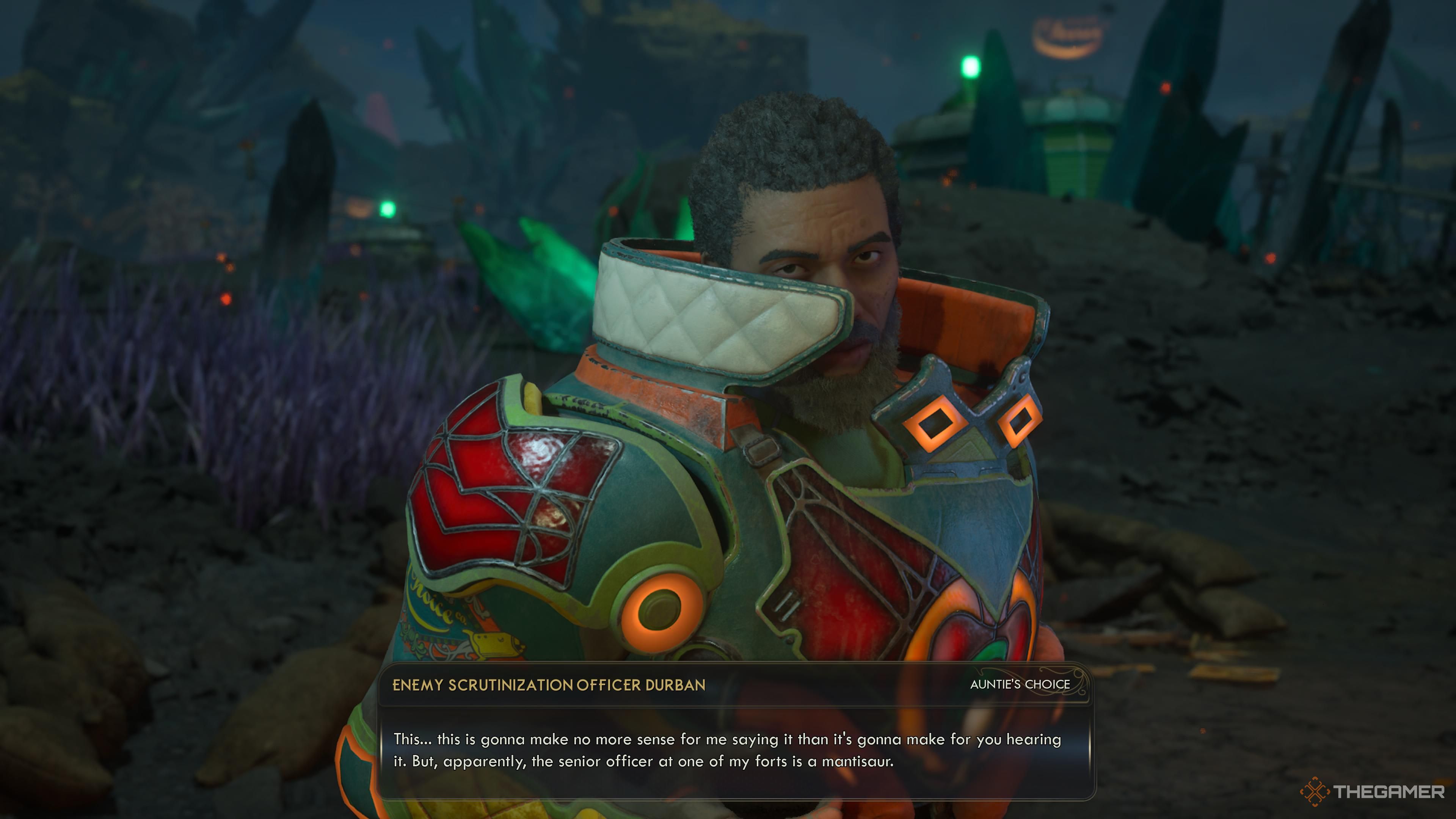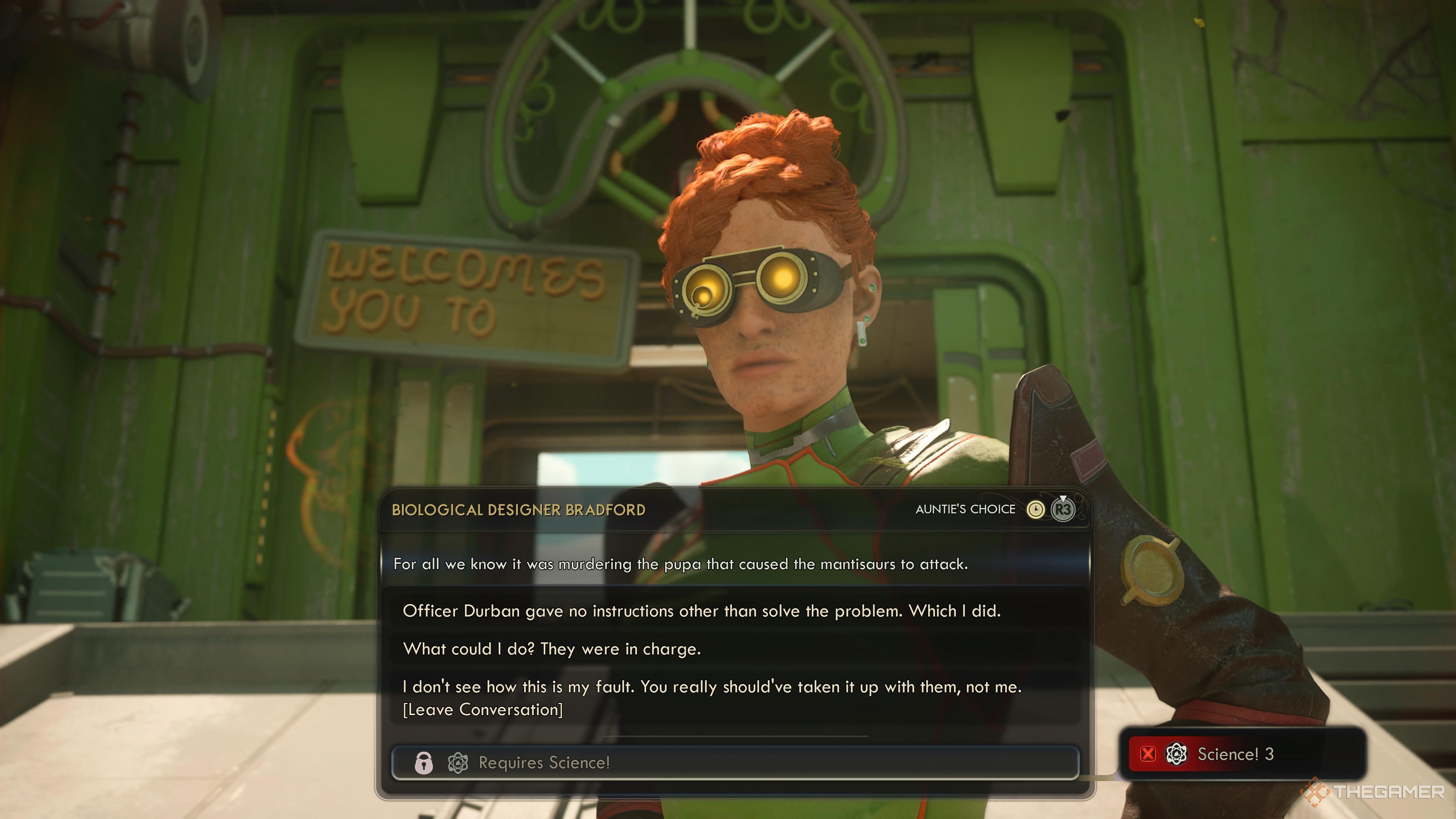 Теперь, когда вы вернулись на Fort Endurance с личинкой Zyranium Mantisaur, вам нужно решить, кому её отдать. Вы можете отдать её напрямую Брэдфорду без каких-либо проблем. Однако, если вы скажете Вентворту, что отдадите её ему, Брэдфорд перебьёт и попытается убедить вас отдать её ей вместо этого.