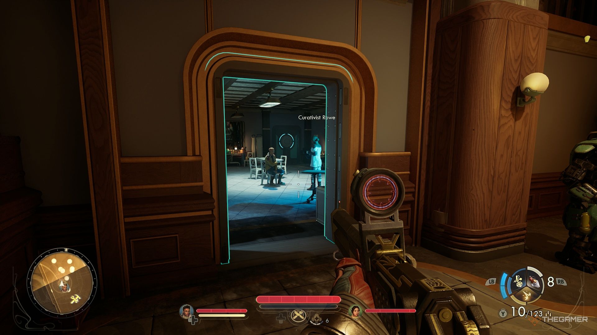 Куративист Роу работает в клинике, которой она делит с Бдительным Хогартом. Чтобы её найти, спуститесь по лестнице и пройдите через дверь справа – она будет разговаривать с пациентом.