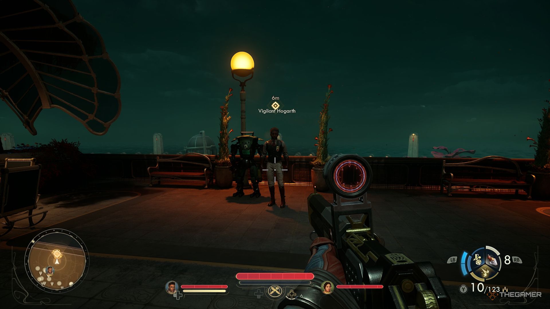 После встречи с министром Милверстрит отправляйтесь в Вестпорт, который неожиданно расположен в восточной области. По прибытии вы найдете Бдительного Хогарта на верхнем этаже главного здания.