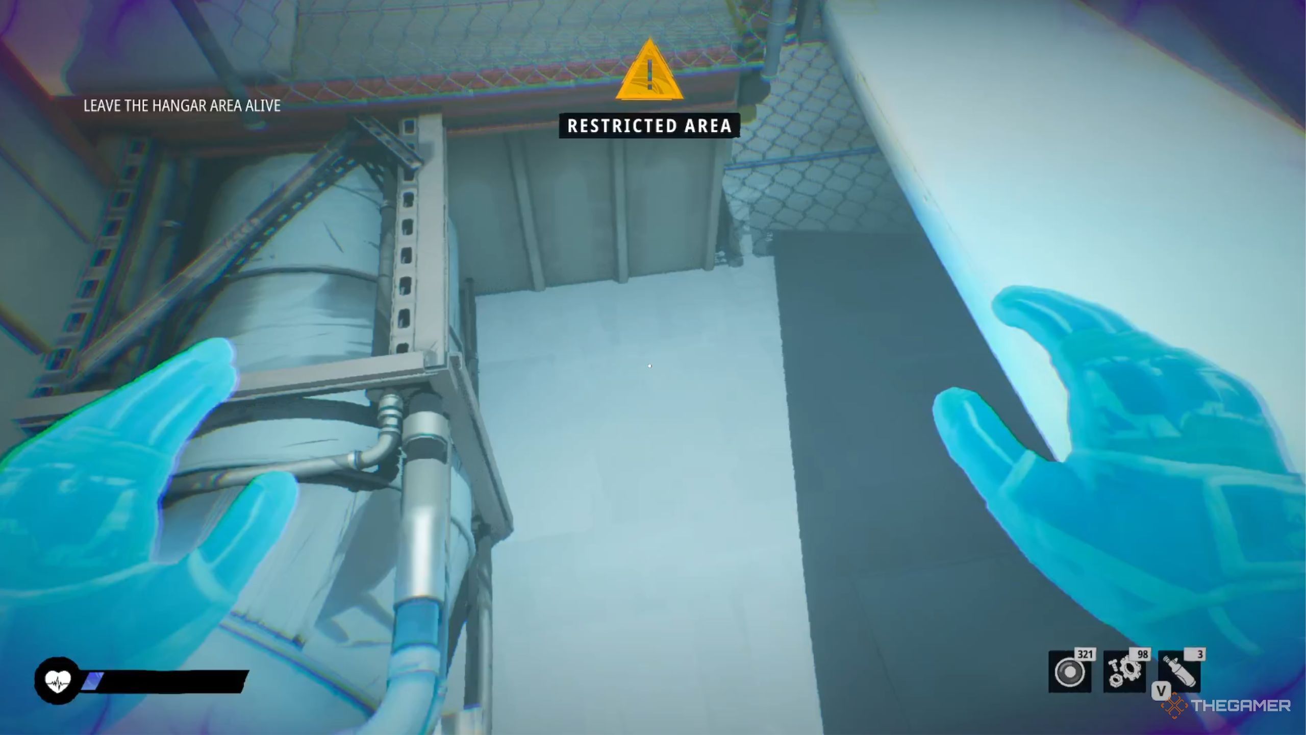 Вместо того, чтобы пройти через большую красную дверь, вы можете присесть и проползти через отверстие справа и продолжить движение вперед, пока не увидите лестницу. Поднимитесь по лестнице, а затем спуститесь с другой стороны. Продолжайте приседать в области слева от вас, пока снова не услышите, как говорит Eve.