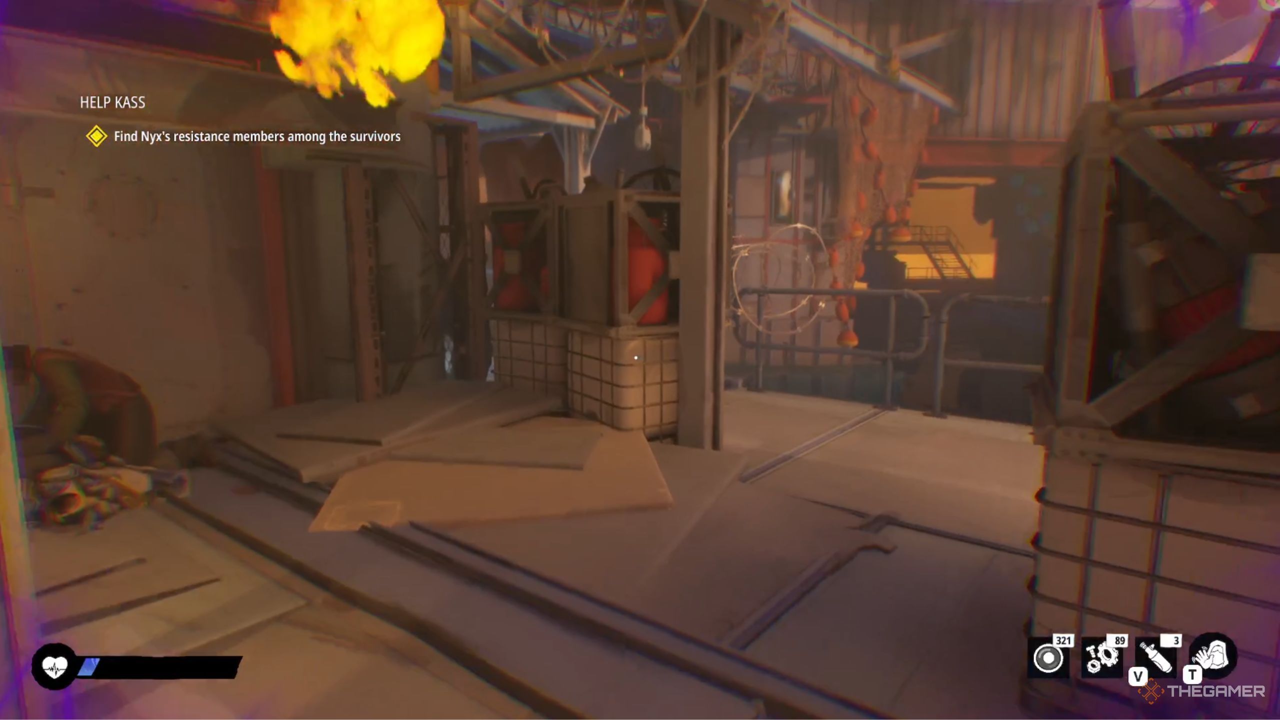 Чтобы найти скрытых выживших, пройдите за Касс и поищите небольшую тропинку справа, спрятанную за некоторыми ящиками. Тщательно исследуйте их укрытие, чтобы собрать всё, что сможете. Как только вы это сделаете, мы сказали Касс, где они находятся. Она немедленно отправилась в укрытие и заперла дверь за собой.
