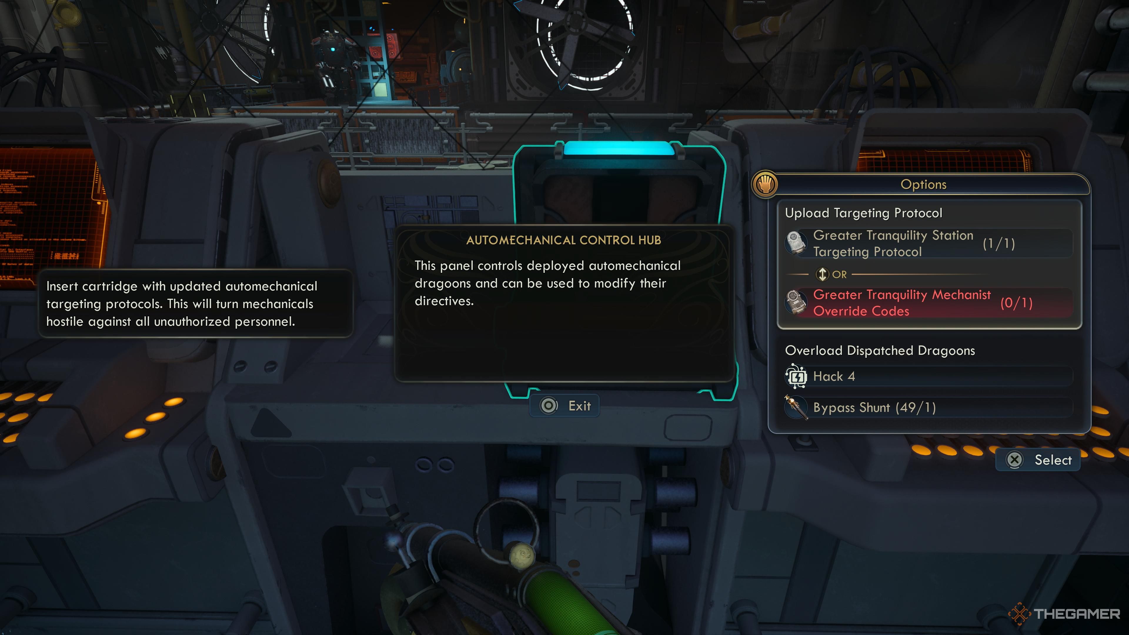 Когда вы войдёте, вы столкнётесь с одним из солдат де Вриса. Вы можете попытаться поговорить с ними сначала, но если вы не пройдёте проверку навыков, вам придётся сражаться. Если вы продолжите двигаться вперёд, вы найдёте терминал, где сможете загрузить протокол наведения на станцию Greater Tranquility, который вам понадобится позже.