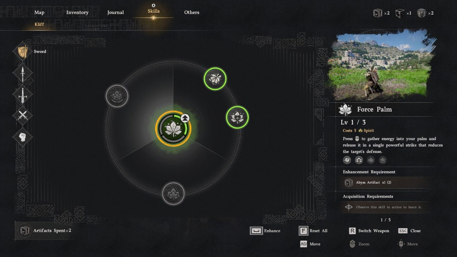 Force Palm — это навык, найденный в зеленой секции дерева навыков, и он особенно полезен для решения головоломок. Он позволяет накапливать энергию в ладони, а затем высвобождать её одним мощным ударом. При эффективном использовании он может повредить сразу нескольких врагов, хотя и не уничтожить их полностью. Тем не менее, один удар Force Palm нанесет значительный урон.