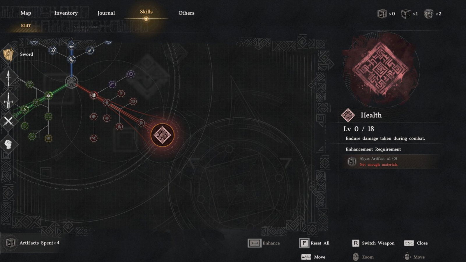 Новые навыки можно открыть в дереве навыков, потратив ресурс под названием Abyss Artifacts.
