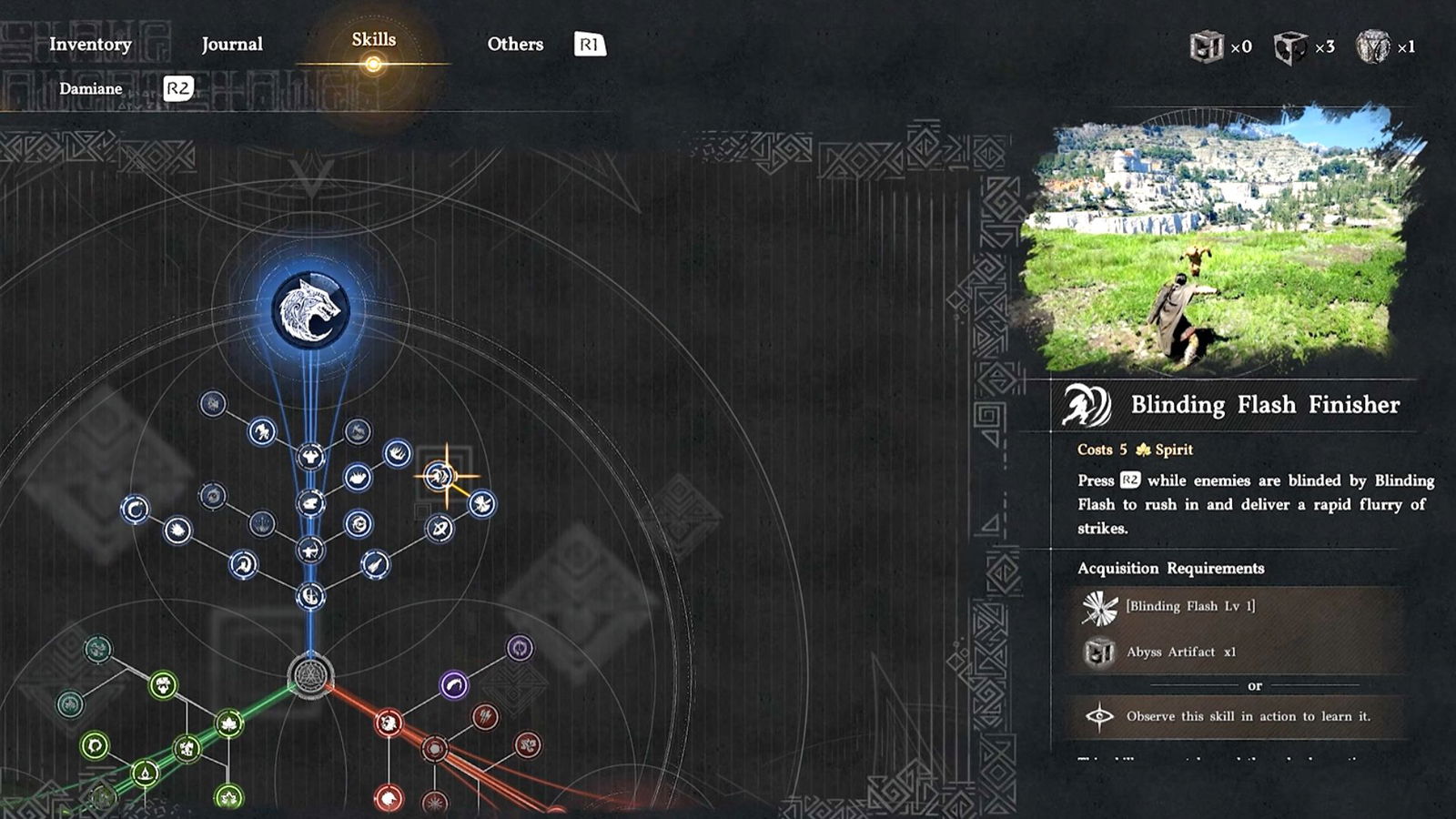 Тщательно выбирая улучшения в дереве навыков, вы можете получить мощные способности в начале игры. Особенно полезным навыком является Blinding Flash Finisher, доступным в синей секции. Он отлично подходит для борьбы с группами врагов, так как расширяет эффект способности Blinding Flash, временно ослепляя окружающих вас противников.