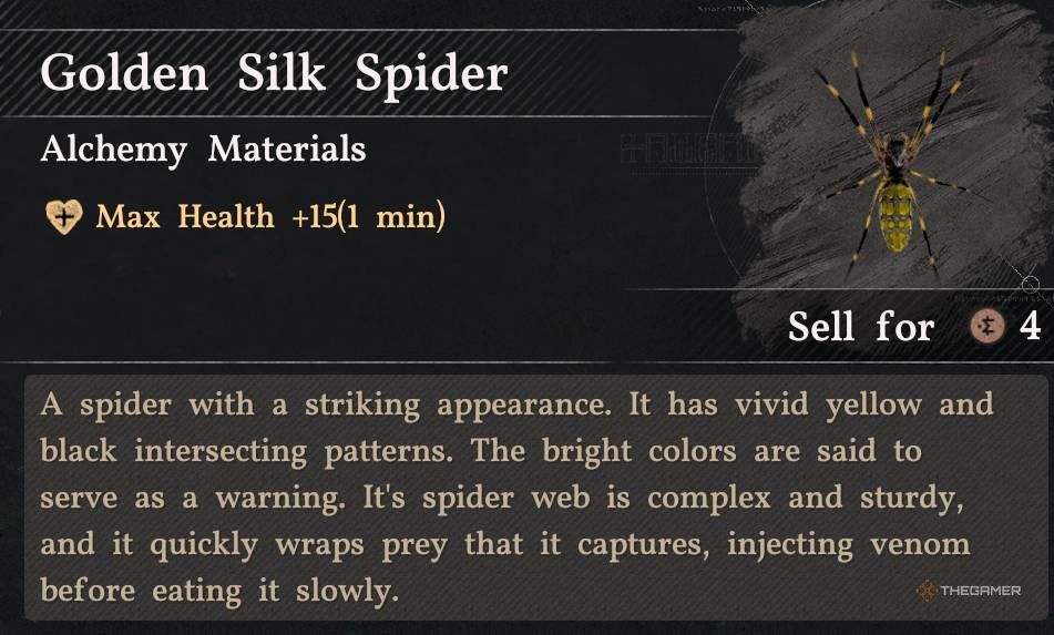 Этот Золотой Шелковый Паук был найден возле Воющего Холма, возле лагеря Греймейн. Я нашел его ночью.