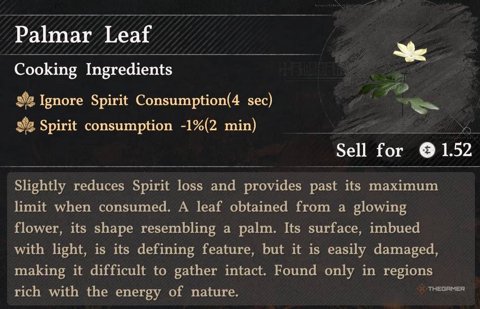 Я обнаружил Пальмовый лист в регионе Деменисс, возле Полумесячного озера. Эти листья можно найти не на каждом собранном растении, но они довольно ценны и отлично подходят для восстановления Духовной энергии. Также вы можете найти их возле могилы Цзяня в Пайлуне.