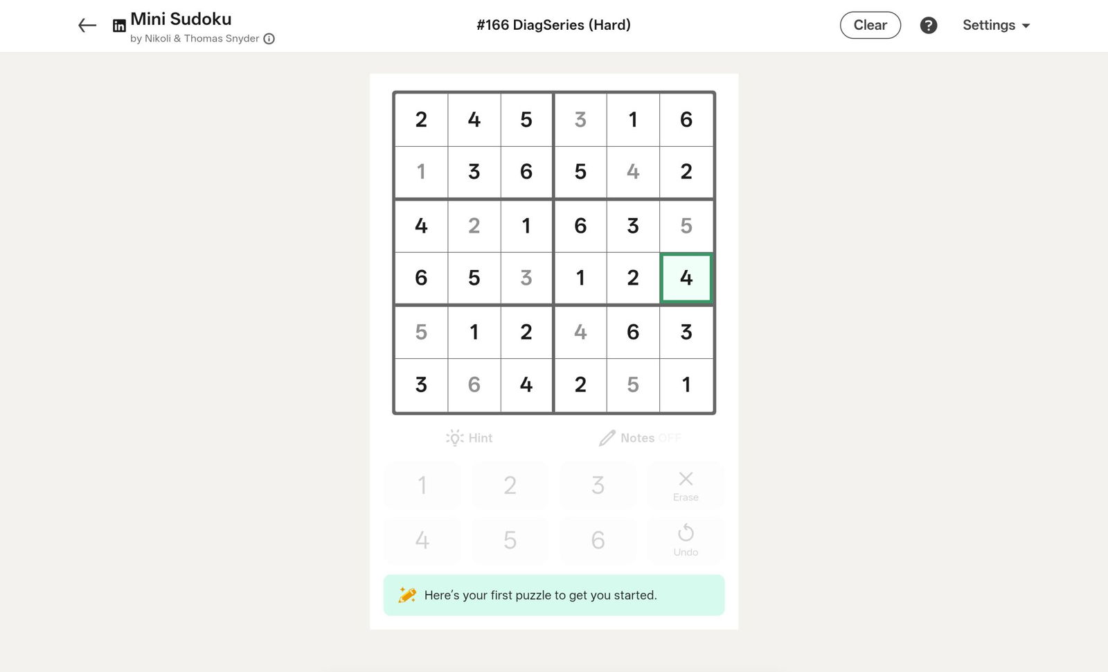 Решение LinkedIn Mini Sudoku за 24 января 2026 года (#166)