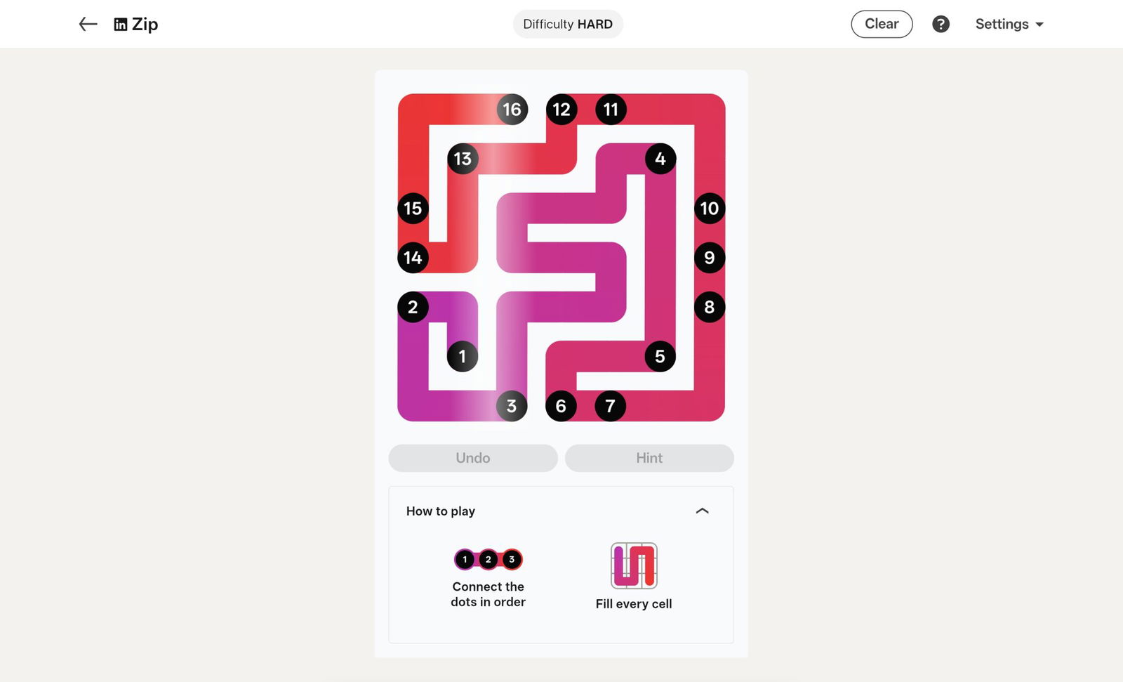 LinkedIn Zip Solution для 24 января 2026 года (#313)