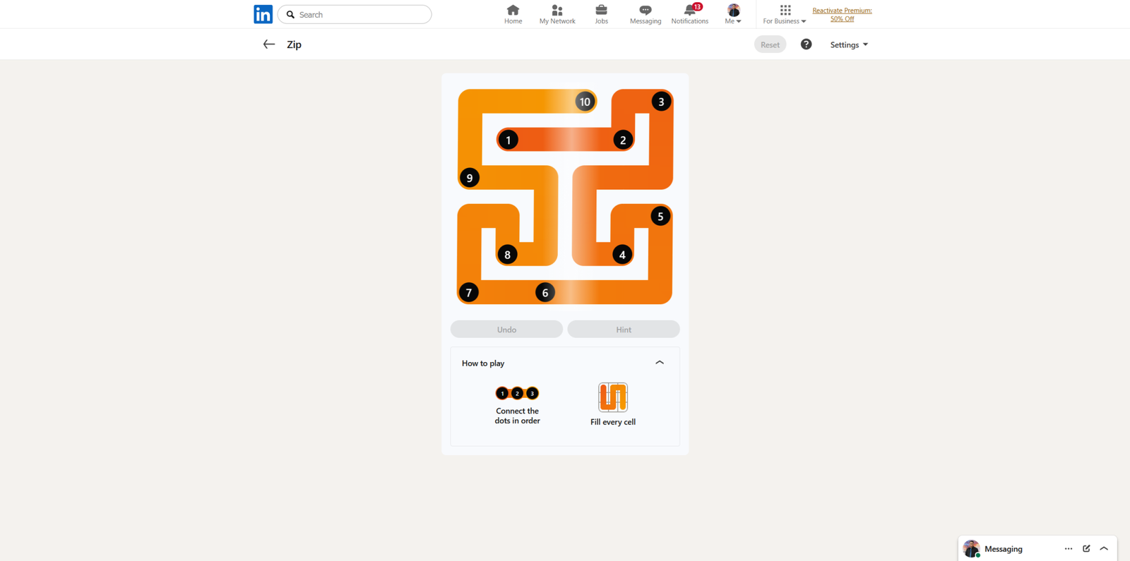 LinkedIn Zip Solution для 24 марта 2026 года (#372)