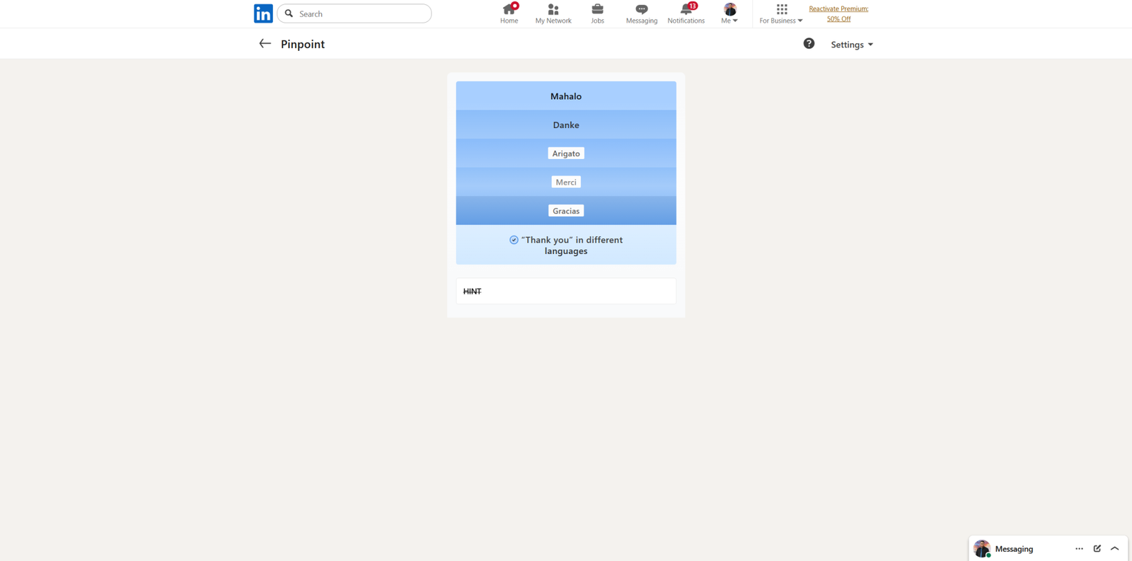 Окей, сегодняшняя Pinpoint была довольно простой, честно говоря! Первая подсказка была ‘Mahalo’, и я сразу понял ответ. Затем вторая подсказка была ‘Danke’, и я думаю, что многие другие люди тоже сразу догадались!