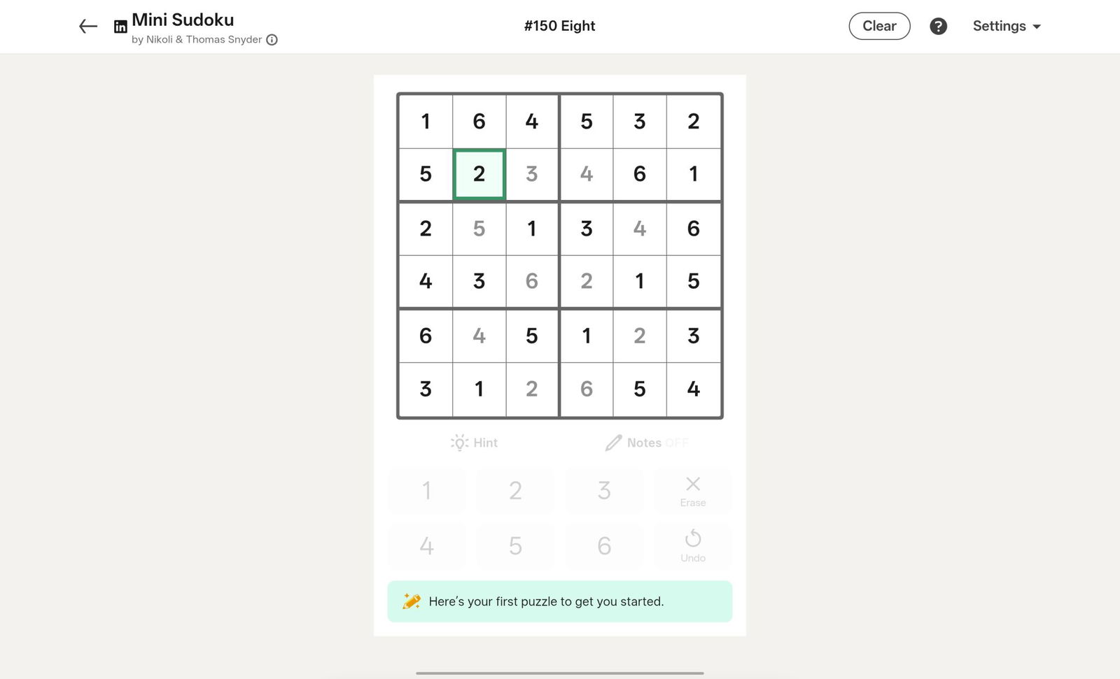 Решение LinkedIn Mini Sudoku за 8 января 2026 года (#150)