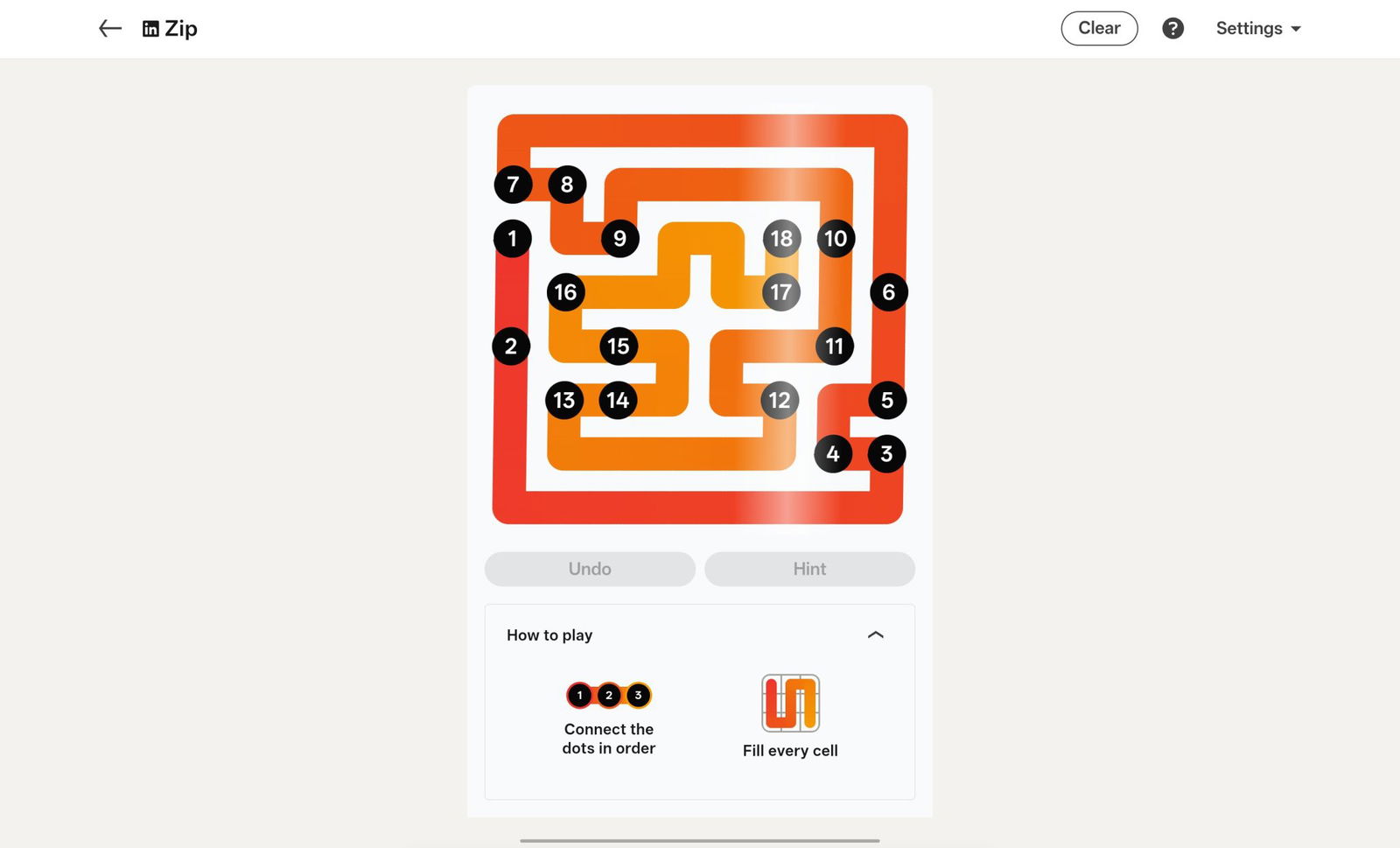 LinkedIn Zip Solution для 8 января 2026 года (#297)
