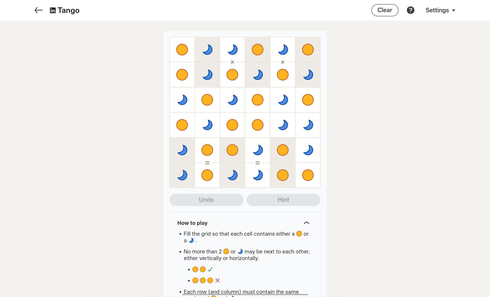 Решение головоломки Tango теперь очень простое. Она поставляется с двенадцатью уже отмеченными квадратами, а оставшиеся пространства легко заполнить благодаря их четкой и логичной организации.