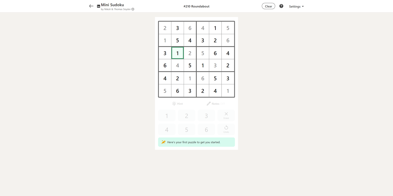 Окей, так что сегодняшняя тема Mini Sudoku – ‘Roundabout’. Честно говоря, она началась с того, что уже было заполнено много чисел – четырнадцать, что больше, чем обычно! Но сама головоломка? На удивление легкая, как я и предполагал.