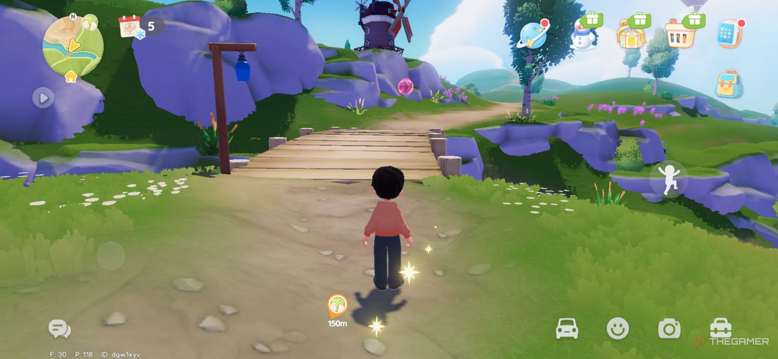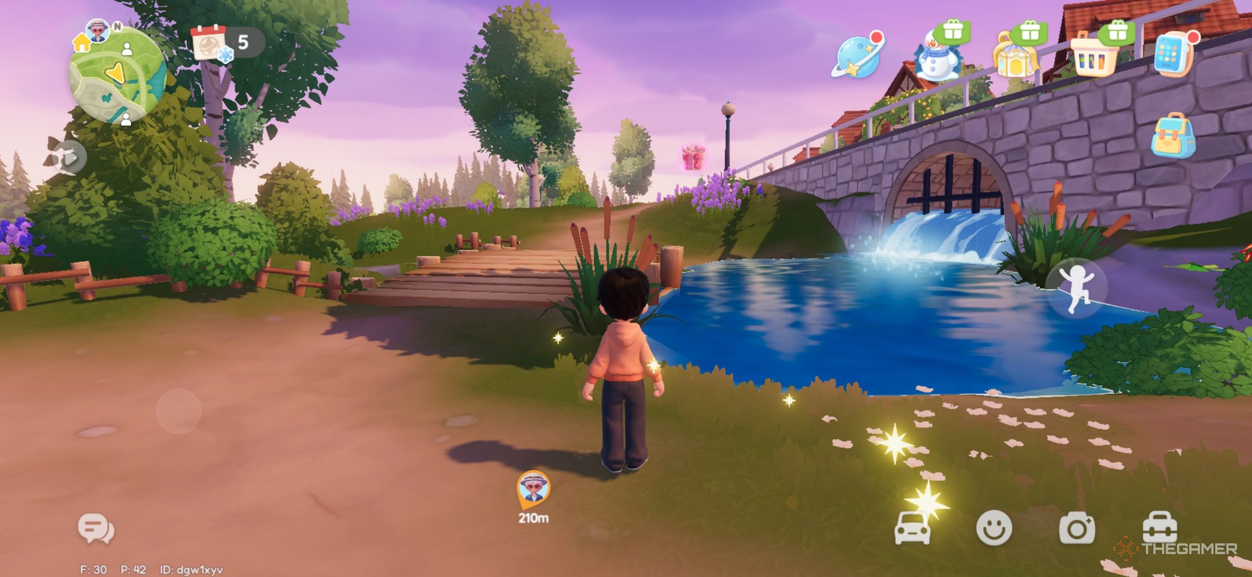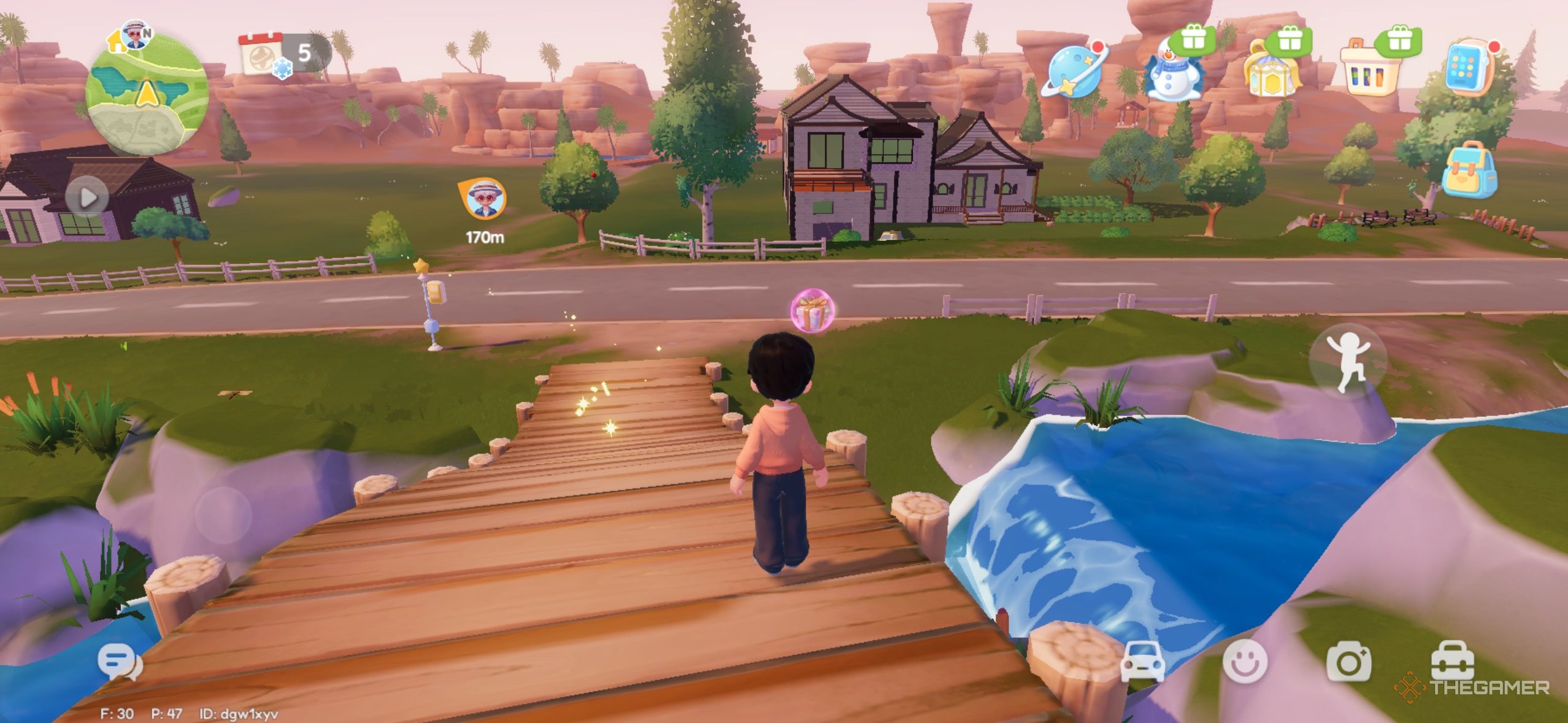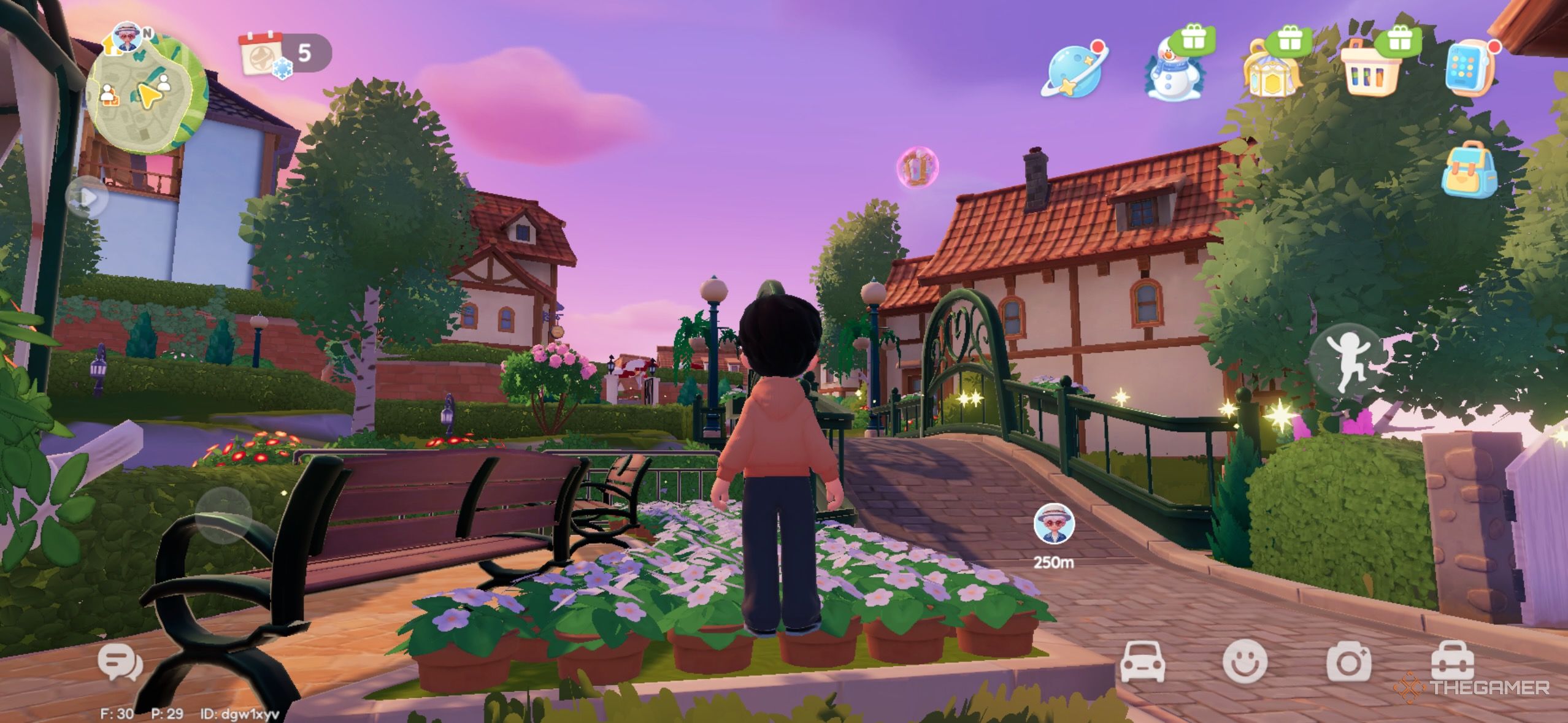 Розовые пузыри, кажется, любят деревянные мосты, так как этот пузырь тоже находится рядом с одним из них. Этот мост находится прямо за пределами Garden Street, и пузырь летит над ним. |