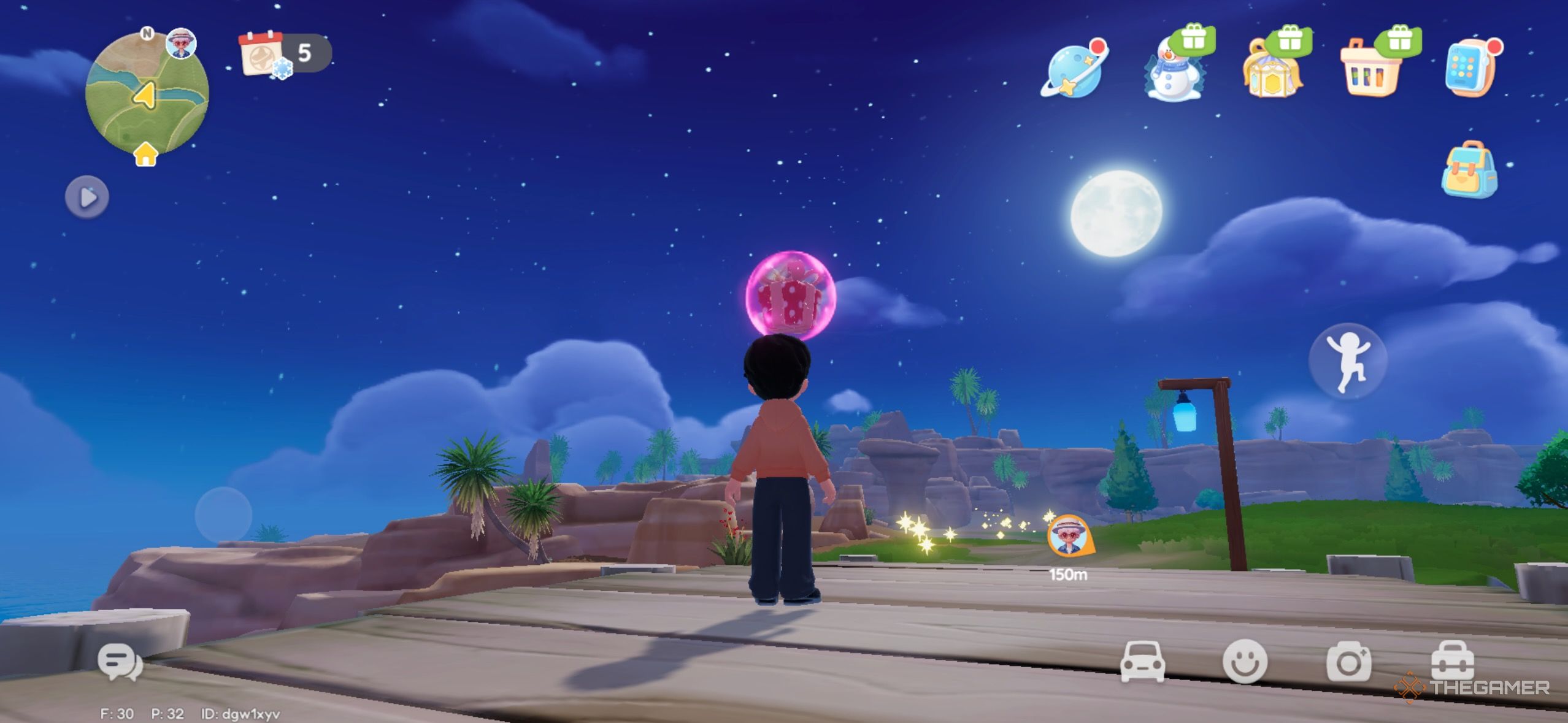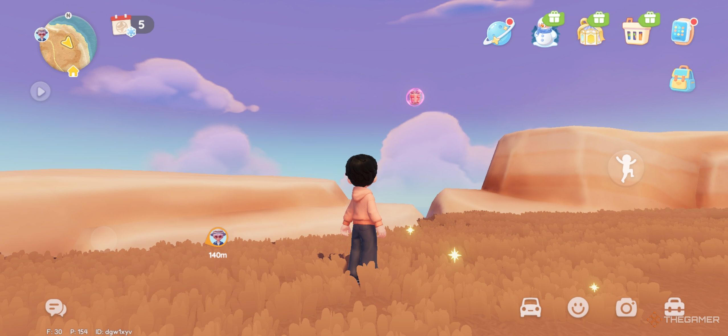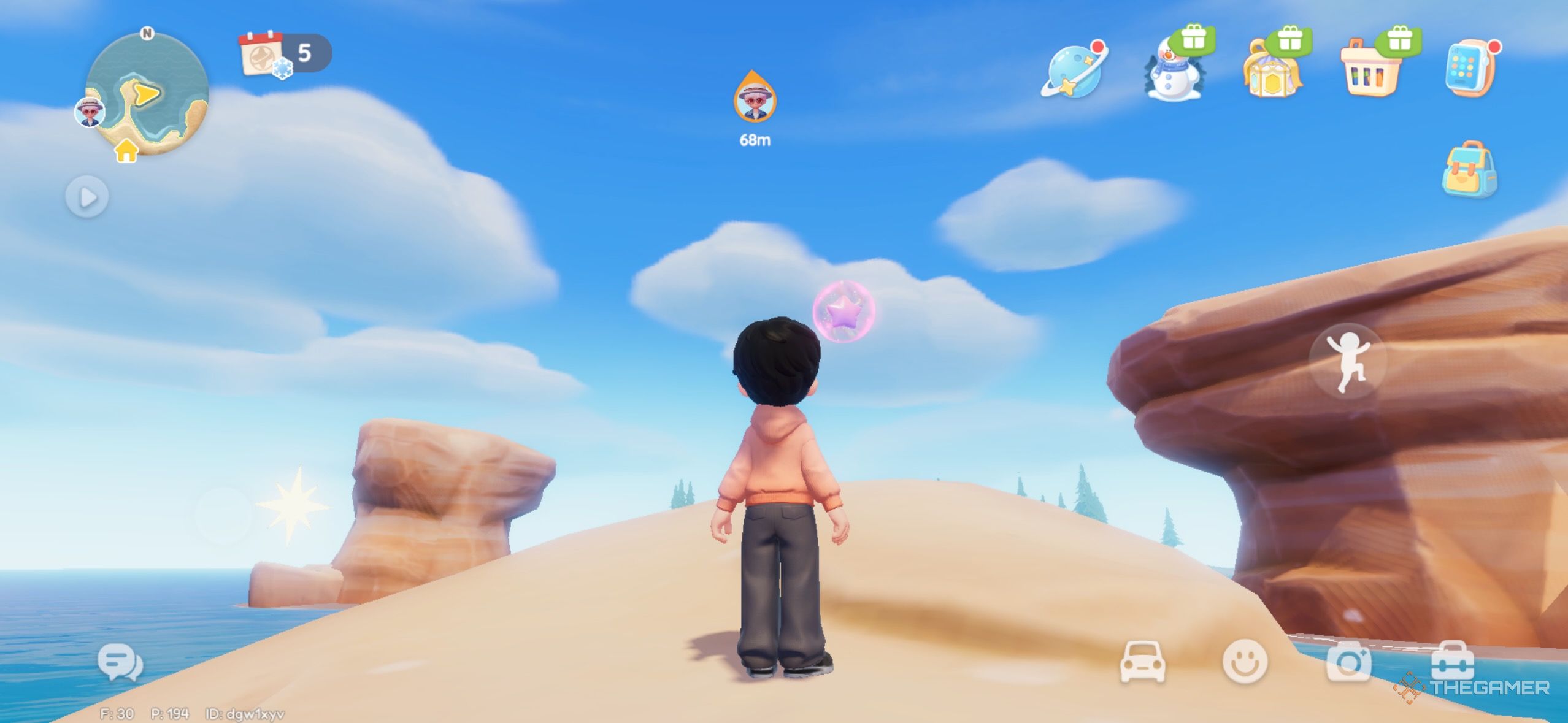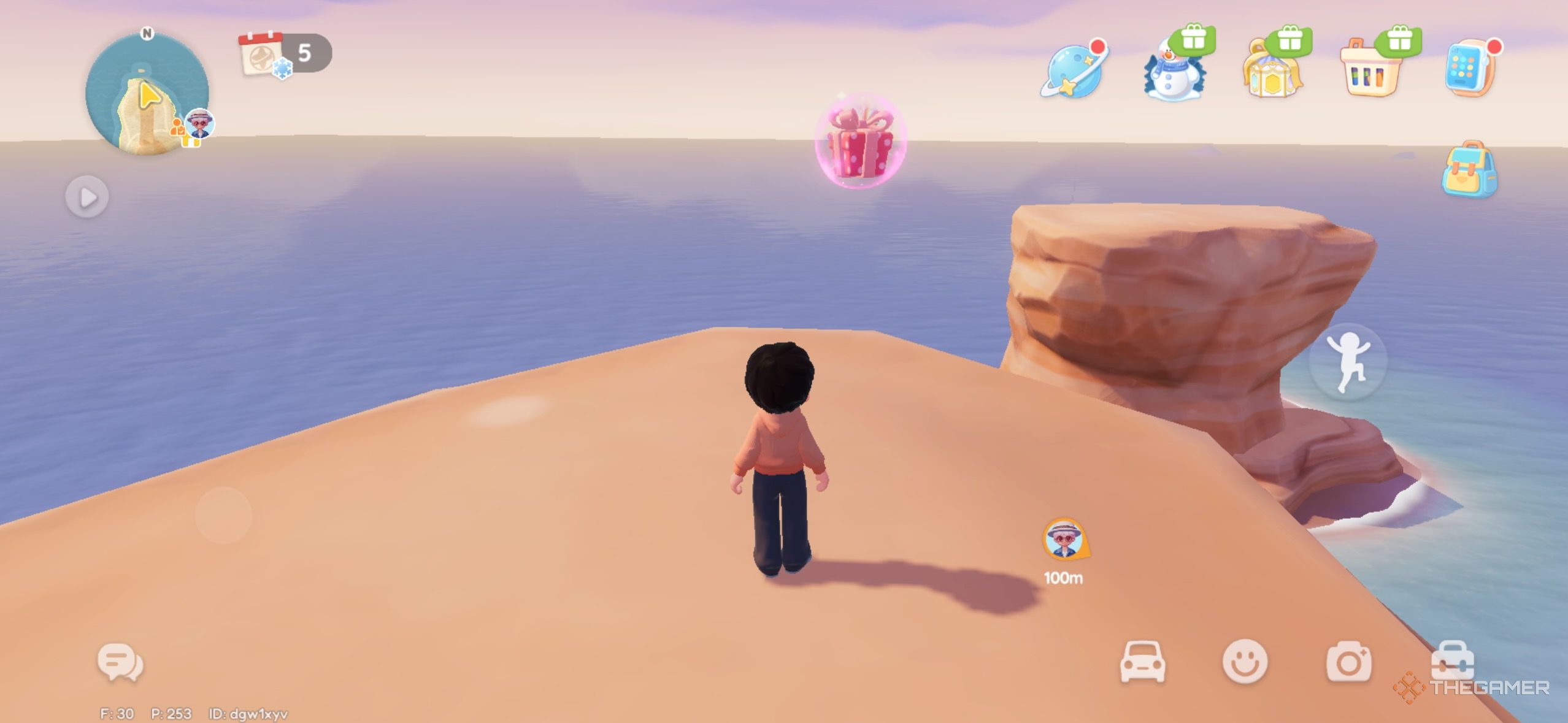 Розовый пузырь летит в северо-западном углу карты. Он находится на вершине скал, поэтому вам нужно прыгать, чтобы добраться туда. |