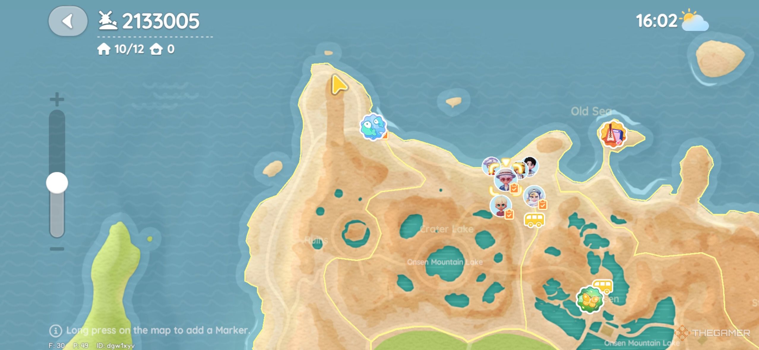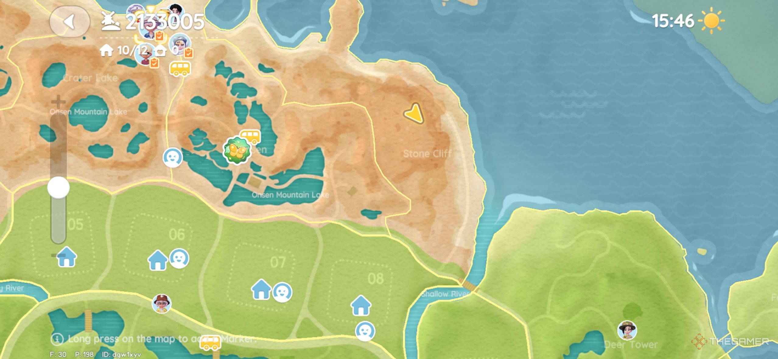 К западу от Озёрного горного курорта вы можете найти розовый пузырь на краю острова. Он находится между двумя деревьями. |