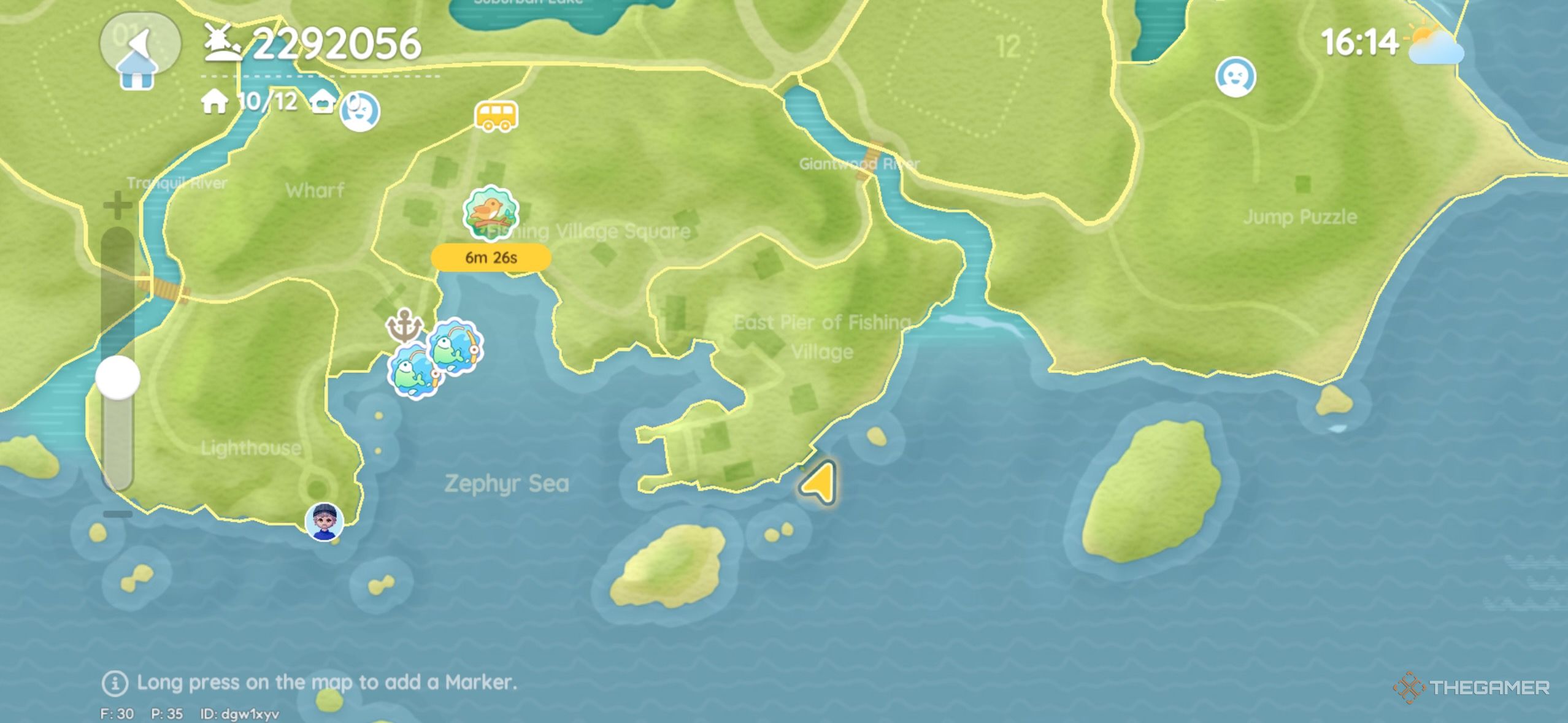 На краю Восточного пирса Рыбацкой деревни есть пузырь рядом с водой. Вы можете найти его за домом, на задней палубе. |