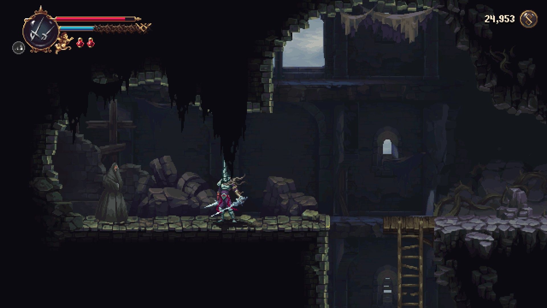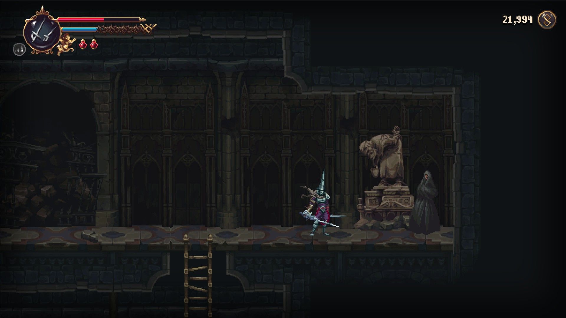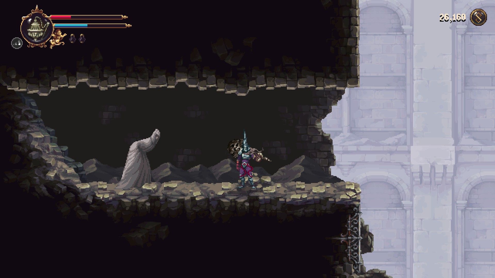 На экране справа от Veredicto, исследуйте скрытую нишу в правом верхнем углу. До неё легко добраться, когда у вас появится двойной прыжок. |