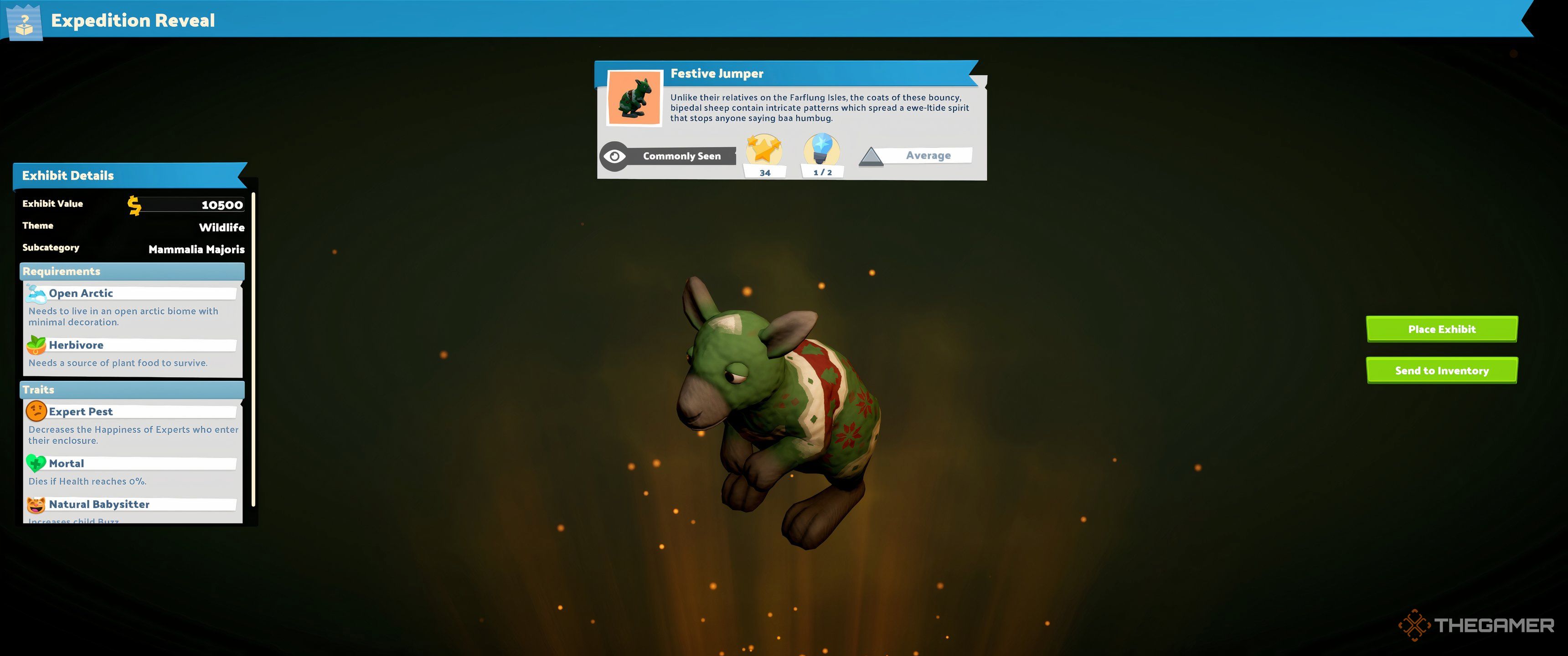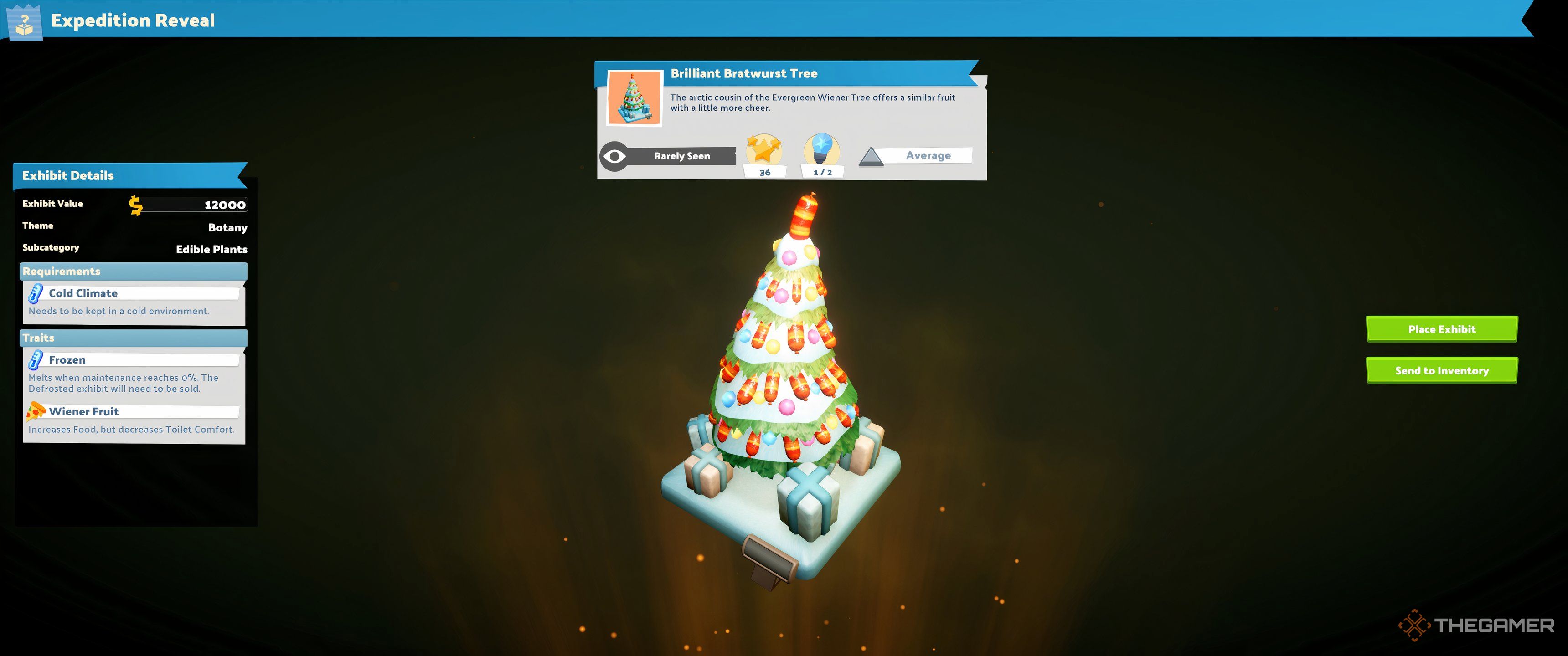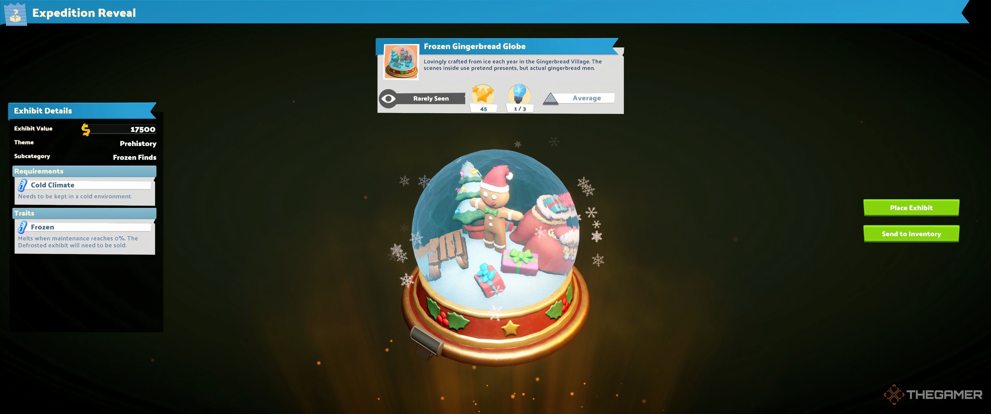 У нас есть четыре новых экспозиции для изучения! Деревня пряничных домиков открывает как демонстрацию растений холодных климатов, так и стандартную экспозицию холодных климатов. Это единственные экспозиции, демонстрирующие растения и традиционные климаты, потому что Bauble Breach открывает демонстрацию холодноводных рыб, а Festive Fleeces открывает новую экспозицию млекопитающих.