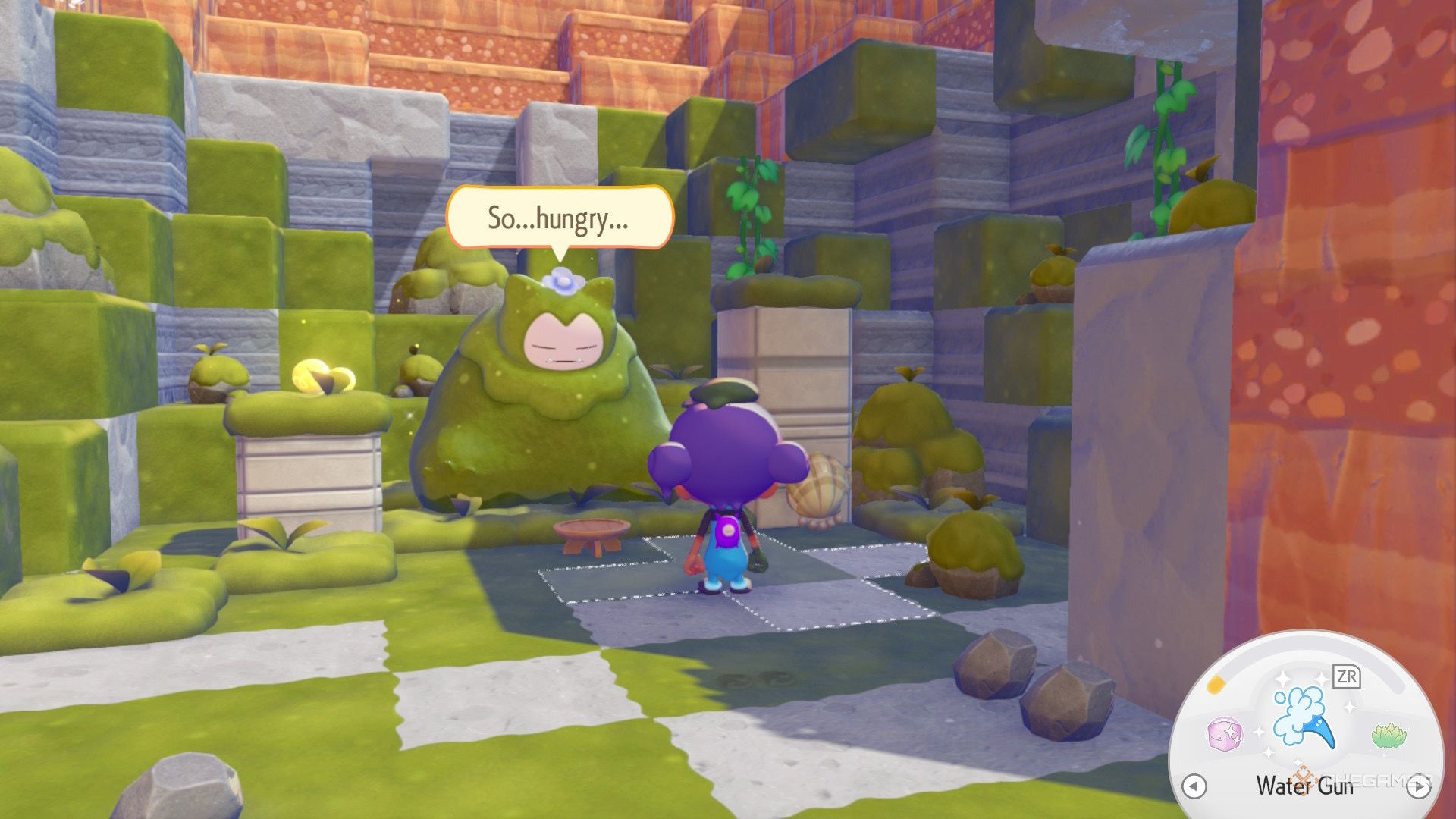 Чтобы разбудить его, выполните цепочку заданий Bleak Beach. После этого он упомянет в текстовом пузыре, что проголодался. Дайте ему любой предмет еды, чтобы починить его особый ареал обитания и разблокировать его способность ‘Eat’.