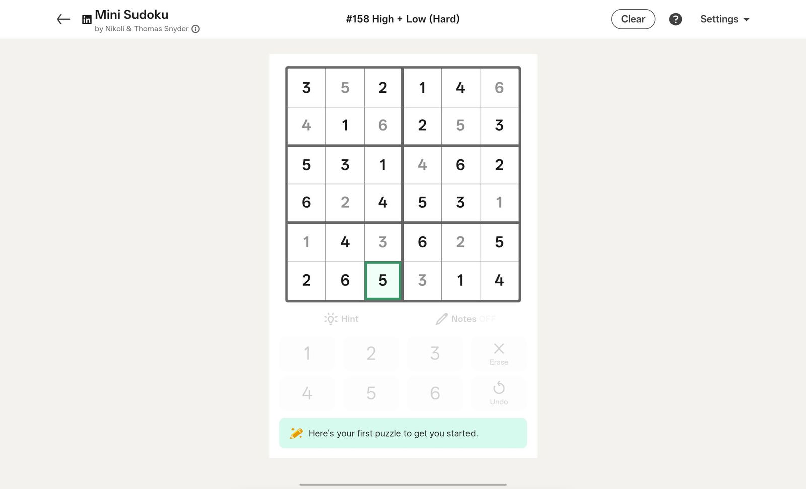Решение LinkedIn Mini Sudoku за 16 января 2026 года (#158)