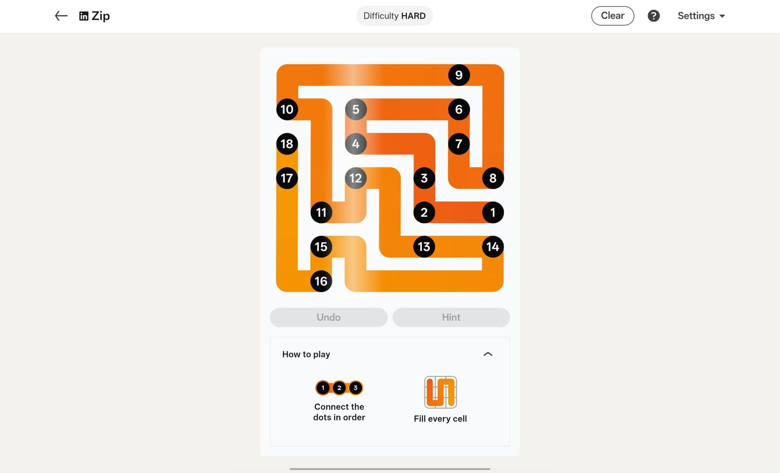 LinkedIn Zip Solution для 16 января 2026 года (#305)