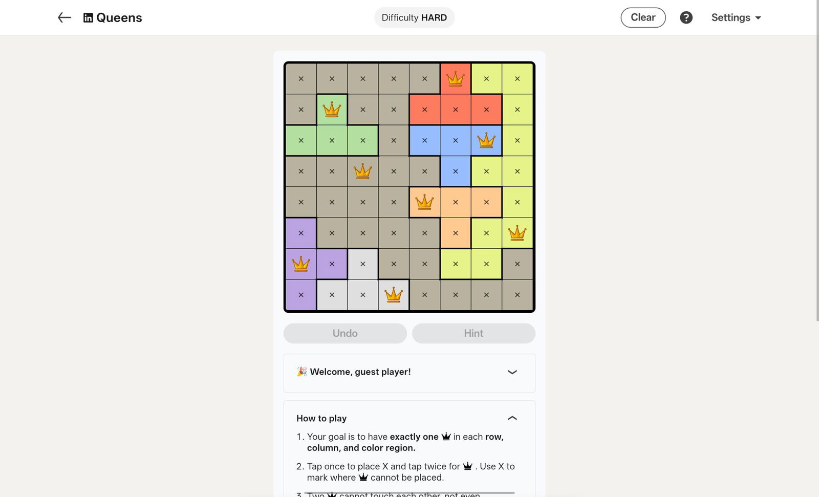 Сегодняшняя головоломка использует классическую сетку 8×8 и предлагает неплохое испытание. Вам нужно будет внимательно следовать правилам, чтобы обнаружить все спрятанные короны.