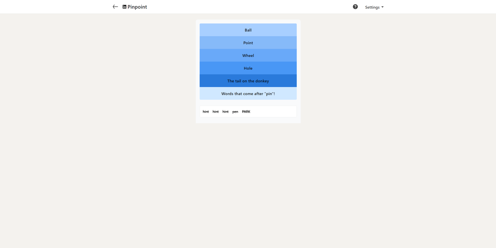 Сегодняшняя головоломка Pinpoint довольно проста и посвящена распространённой теме. Первый ключ – ‘Ball’, который сам по себе немного расплывчат, но имеет отношение к общей теме. Второй ключ, ‘Point’, делает решение гораздо более очевидным.