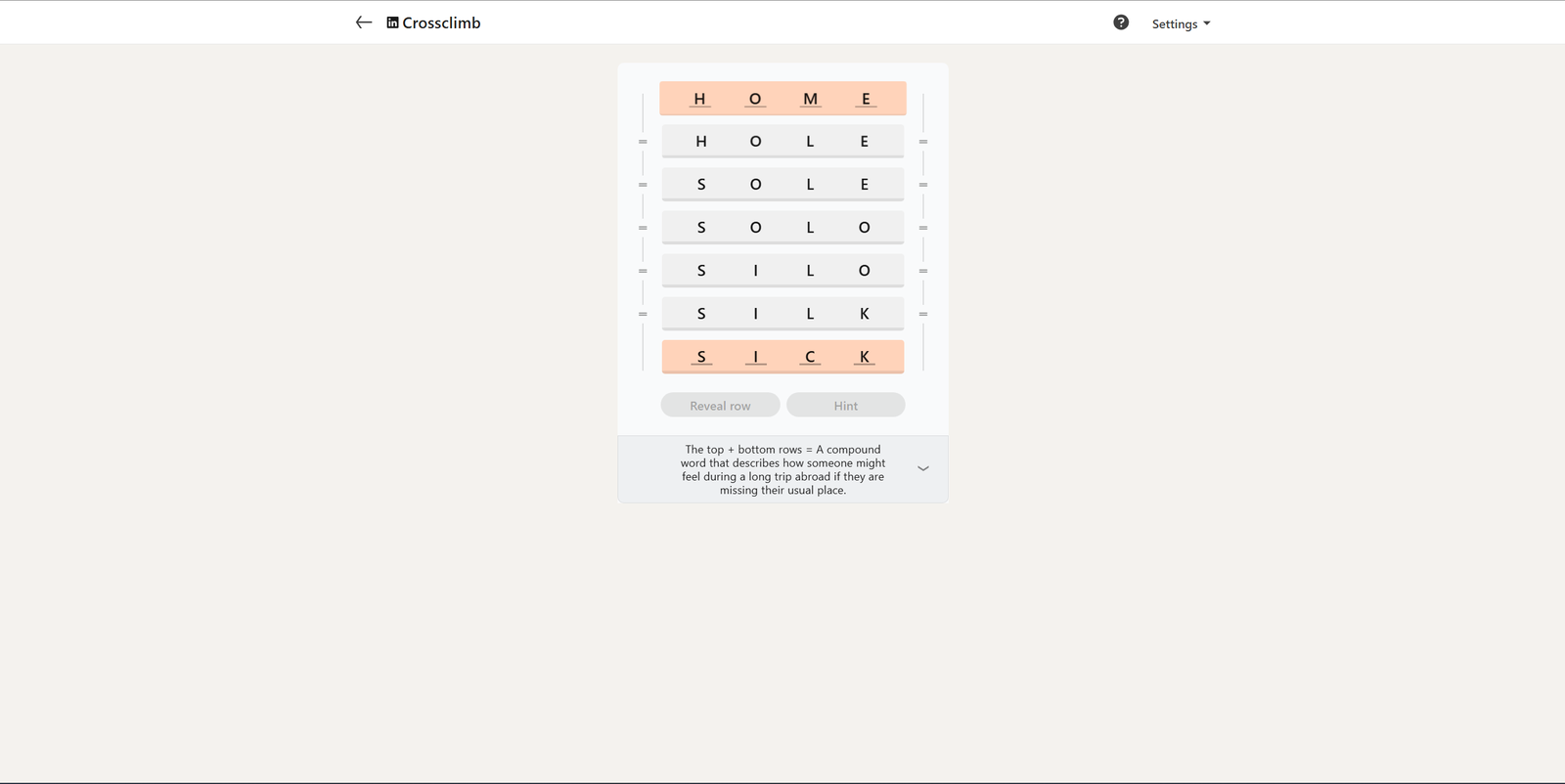 Вот решение для сегодняшнего LinkedIn Crossclimb: