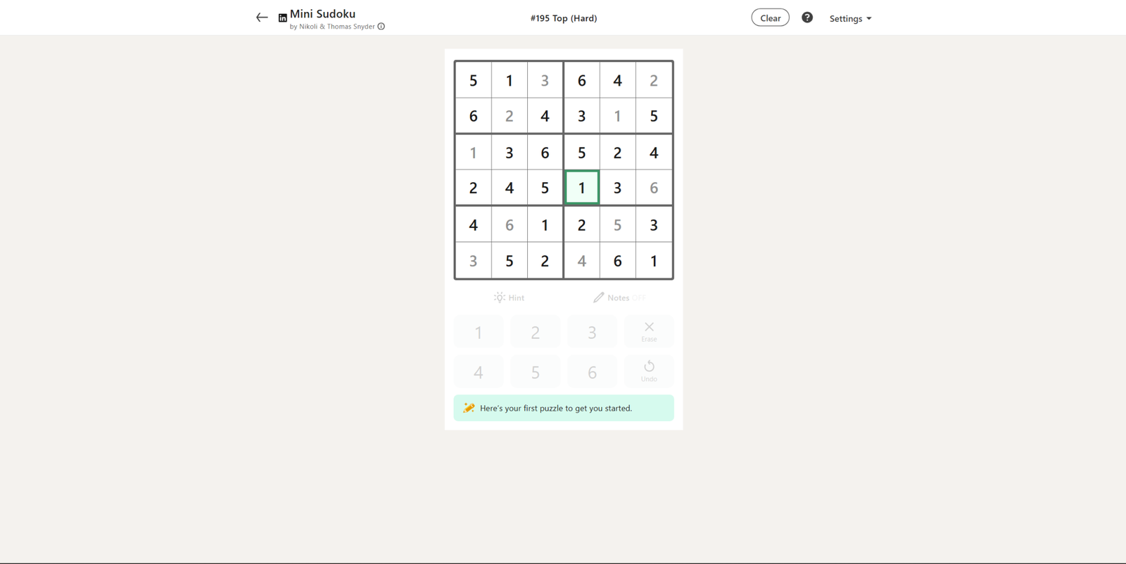 Сегодняшняя мини-головоломка Судоку посвящена теме ‘Верх’ и начинается с десяти уже заполненных чисел. Хотя головоломка в целом сложна, вы должны быть в состоянии легко решить несколько подсказок в начале.