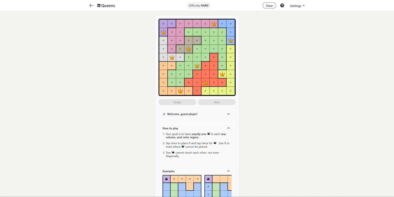 Сегодняшняя головоломка Queens завершает неделю сеткой 9×9, и решения довольно интересны. Это приятный баланс между простыми и сложными подсказками.