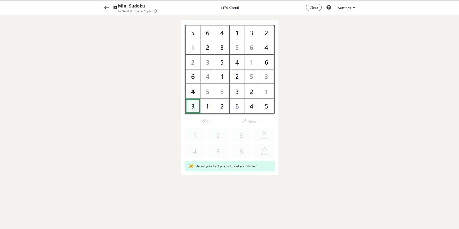 Решение LinkedIn Mini Sudoku за 28 января 2026 года (#170)