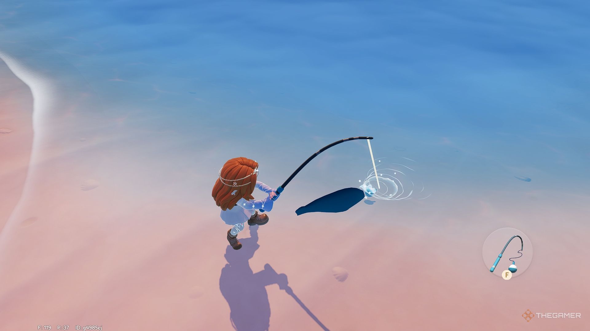 После того, как вы получите удочку во время обучения, вы можете исследовать весь остров, чтобы найти отличные места для рыбалки! Когда вы увидите рыбу, плавающую в воде, приготовьте удочку и нажмите, чтобы забросить леску.