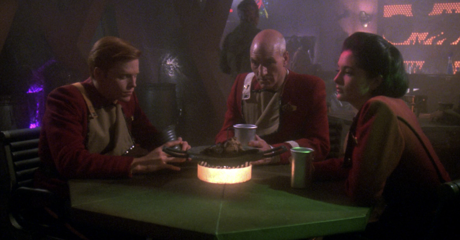 | Cast | Патрик Стюарт, Джонатан Фрейкс, Брент Спайнер, Левар Бёртон, Гейтс МакФадден, Марина Сиртис, Майкл Дорн, Уил Уитон |