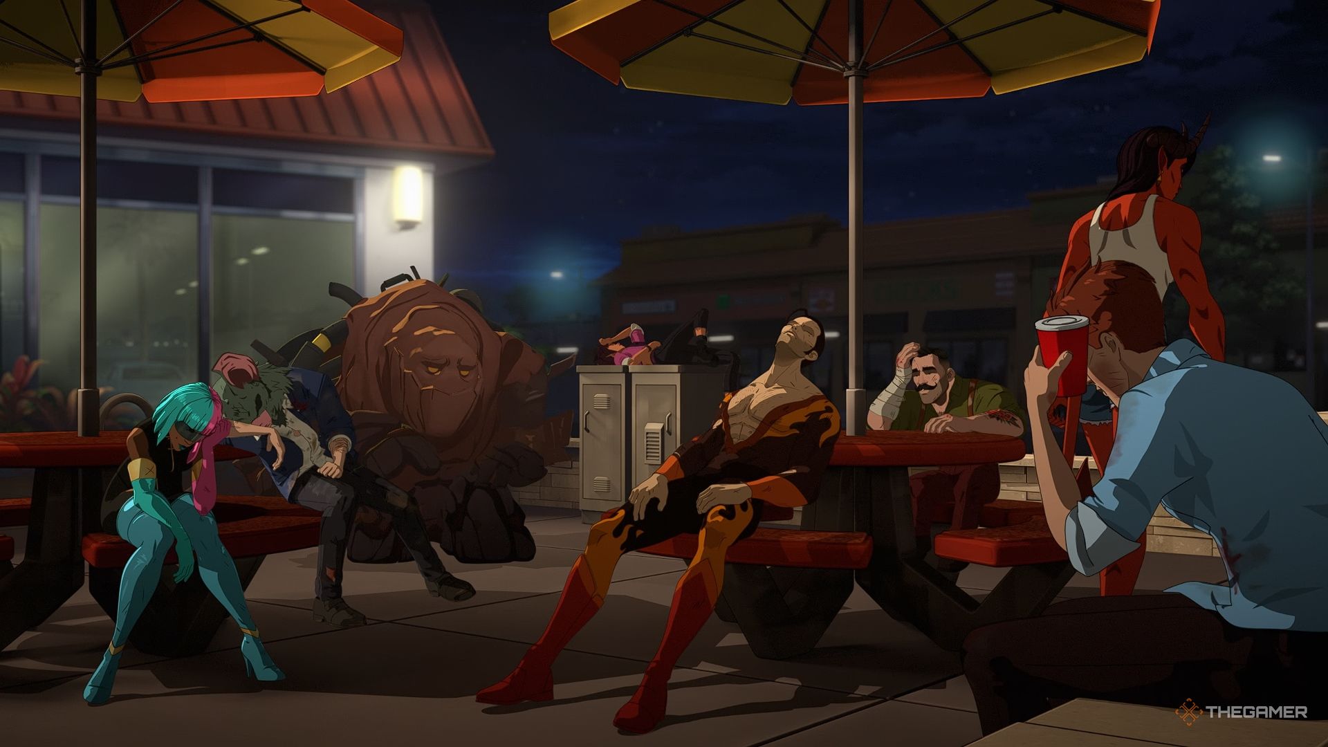 После того, как это будет завершено, вы встретитесь со своей командой, чтобы пообедать и узнать друг друга получше. Это отличная возможность по-настоящему сблизиться, и она включает в себя раскрытие секрета супергеройской личности Роберта.